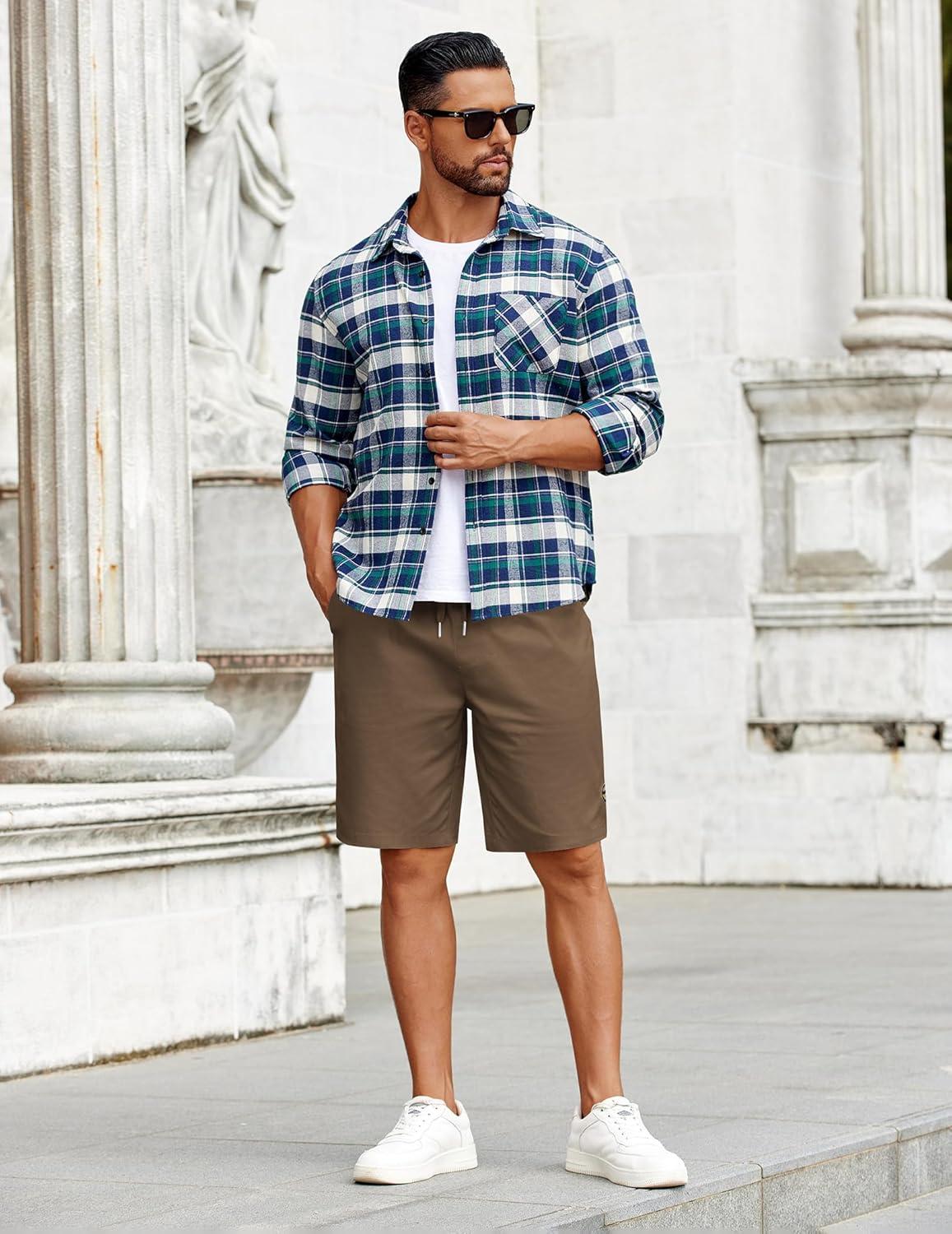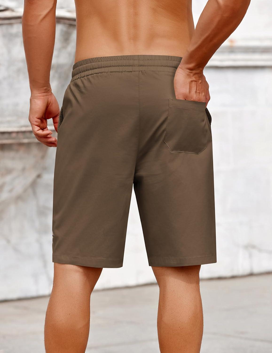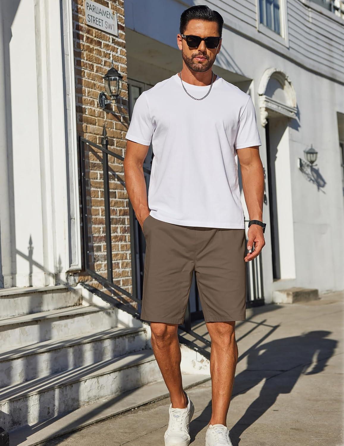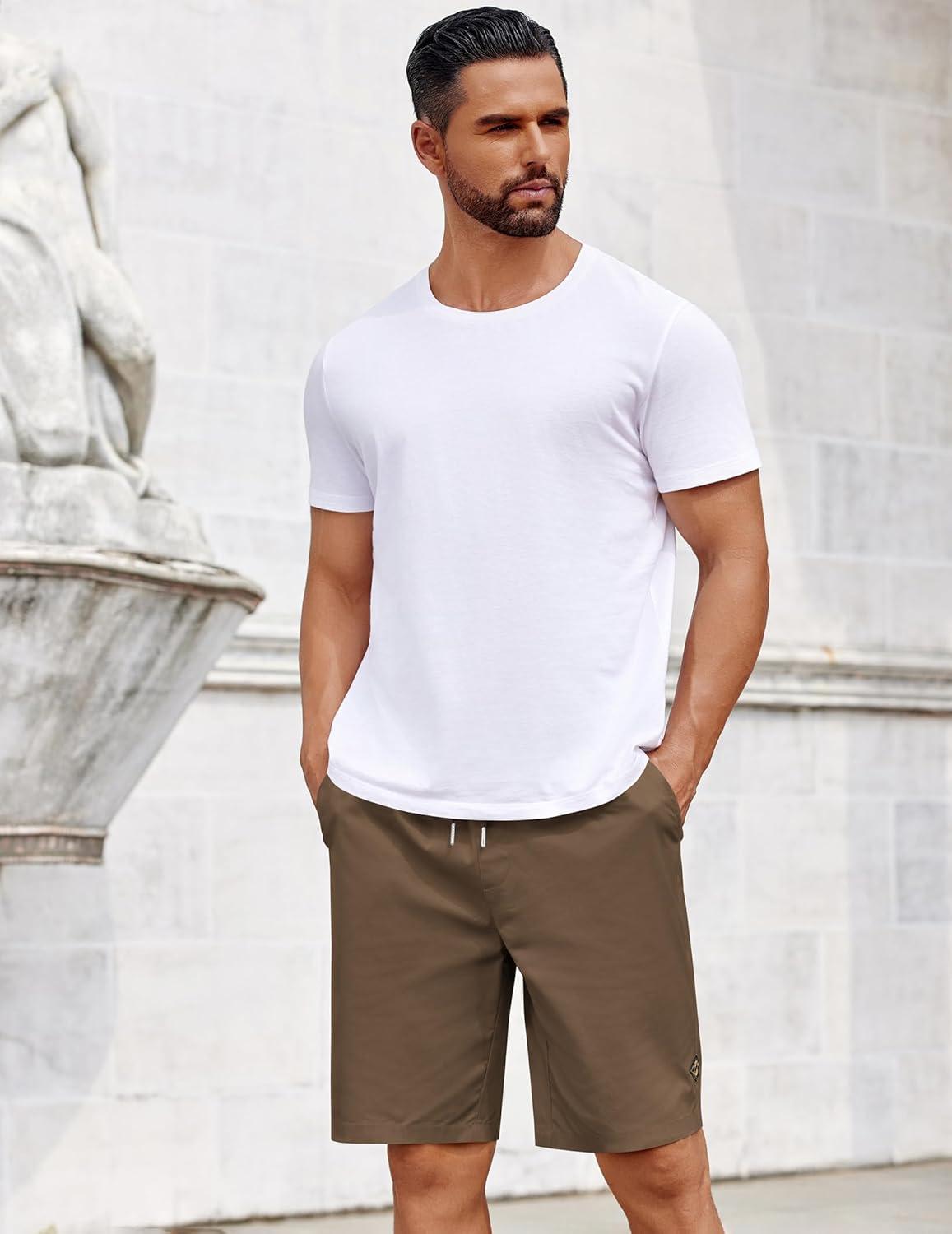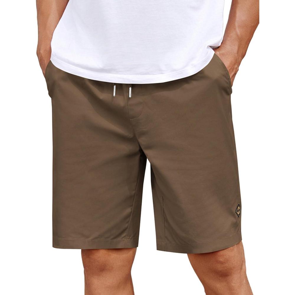 COOFANDY Mens Casual Shorts Cotton Elastic Drawstring Shorts Summer Beach Chino Shorts(Brown)
