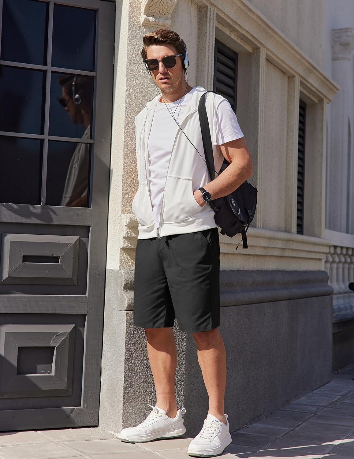 COOFANDY Mens Casual Shorts Cotton Elastic Waist Drawstring Shorts Lightweight Summer Beach Shorts(A-black)