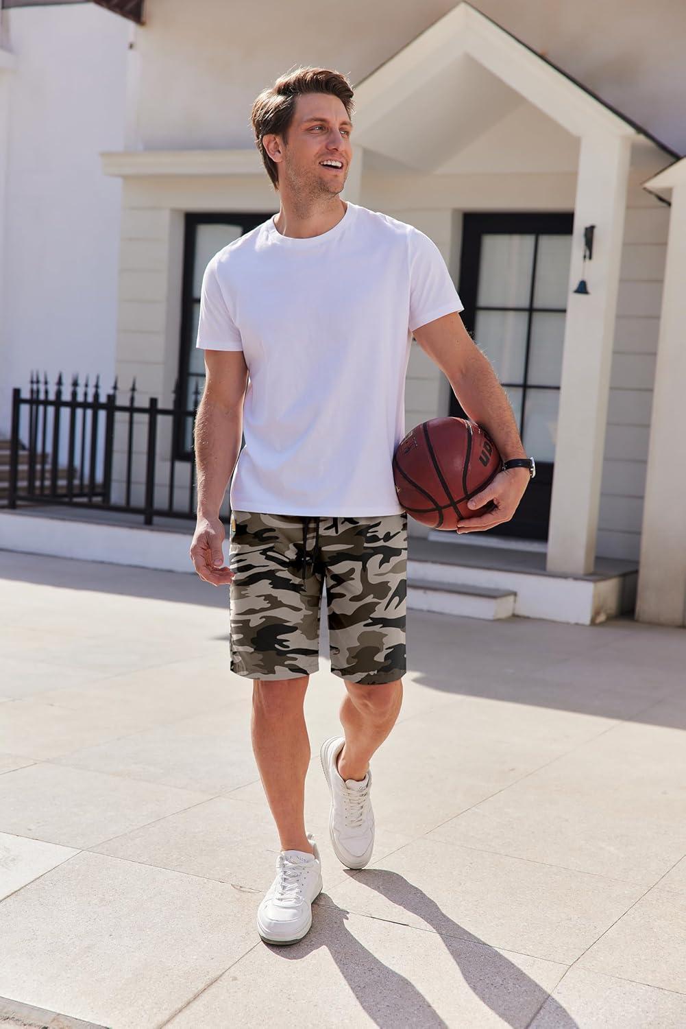 COOFANDY Mens Casual Shorts Cotton Elastic Waist Drawstring Shorts Lightweight Summer Beach Shorts(A-camouflage)