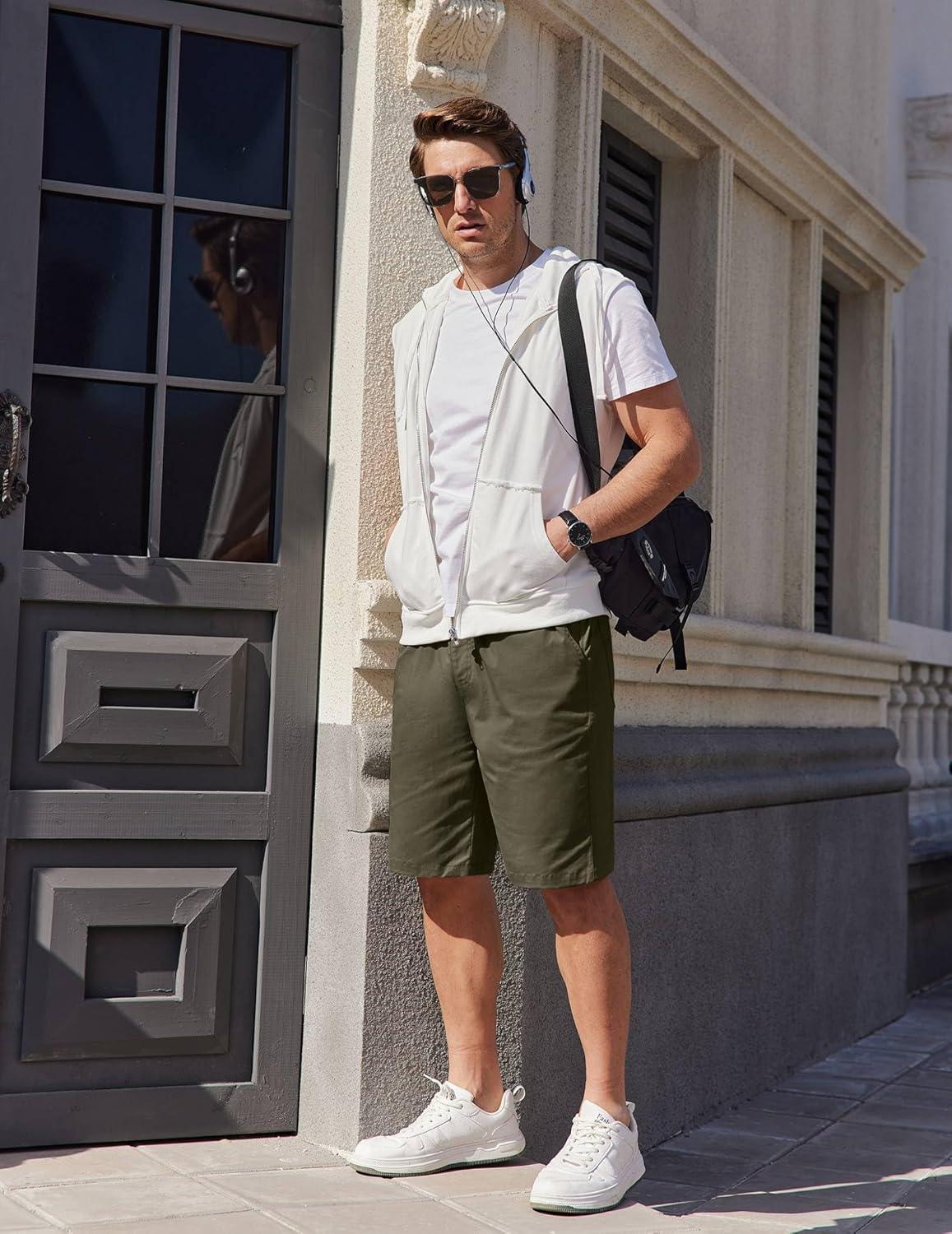 COOFANDY Mens Casual Shorts Cotton Elastic Waist Drawstring Shorts Lightweight Summer Beach Shorts(A-dark Green)