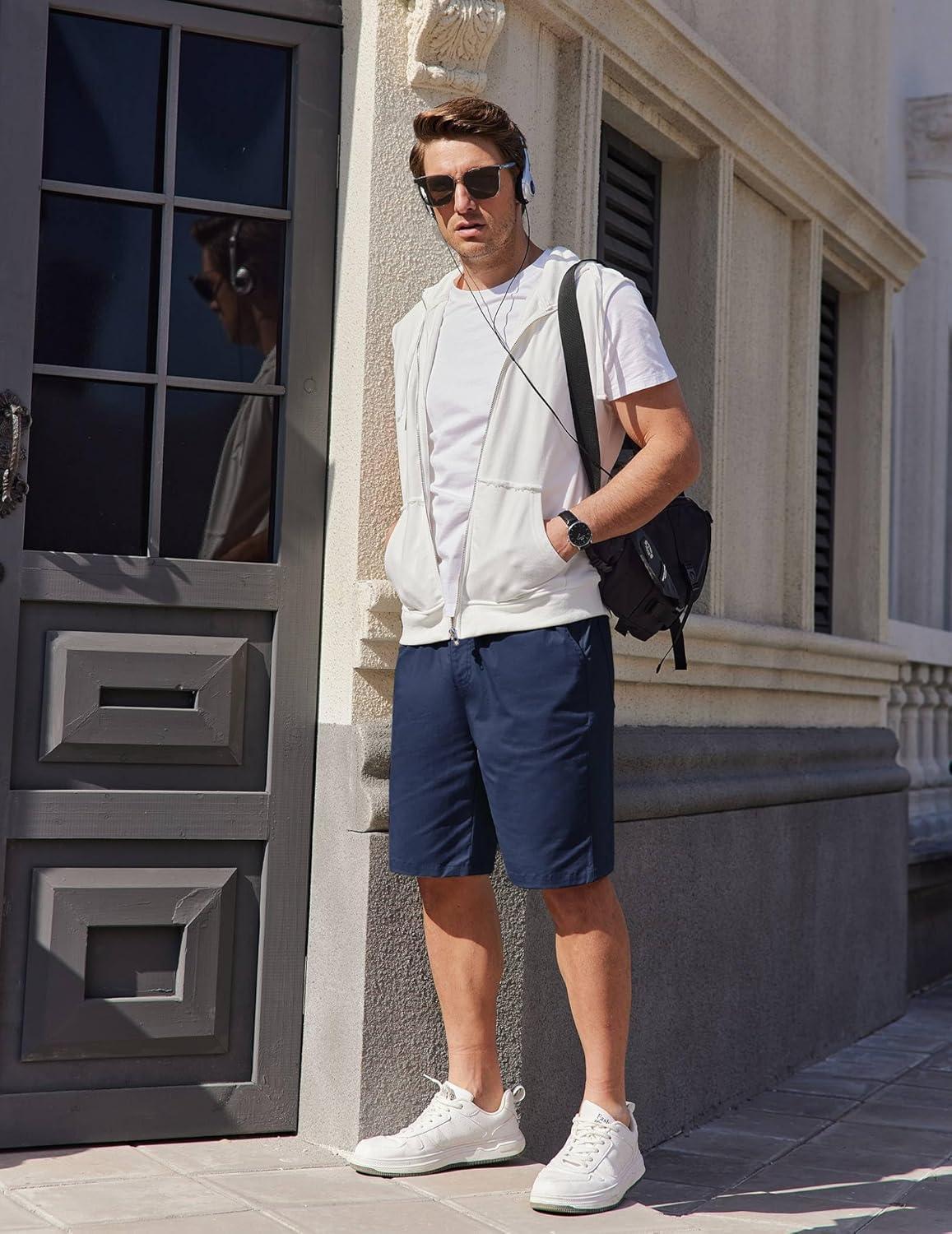 COOFANDY Mens Casual Shorts Cotton Elastic Waist Drawstring Shorts Lightweight Summer Beach Shorts(A-navy Blue)
