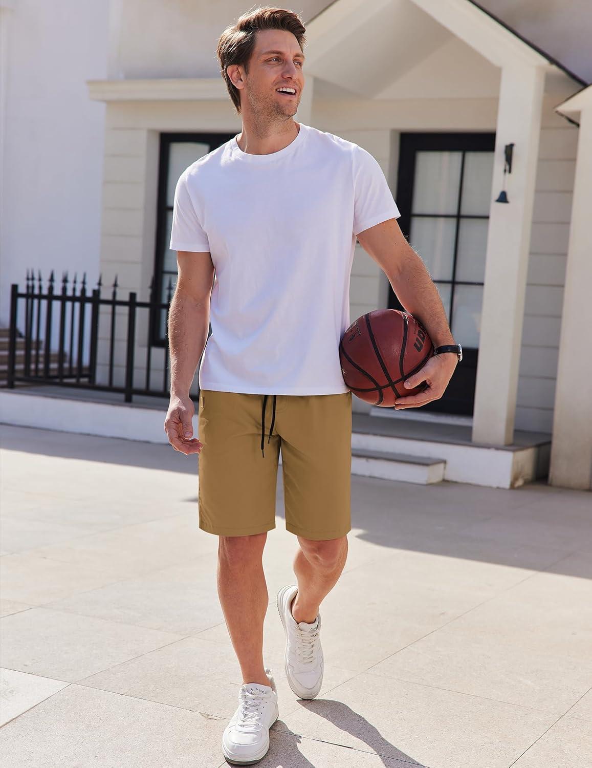 imageCOOFANDY Mens Casual Shorts Cotton Elastic Waist Drawstring Shorts Lightweight Summer Beach ShortsAturmeric