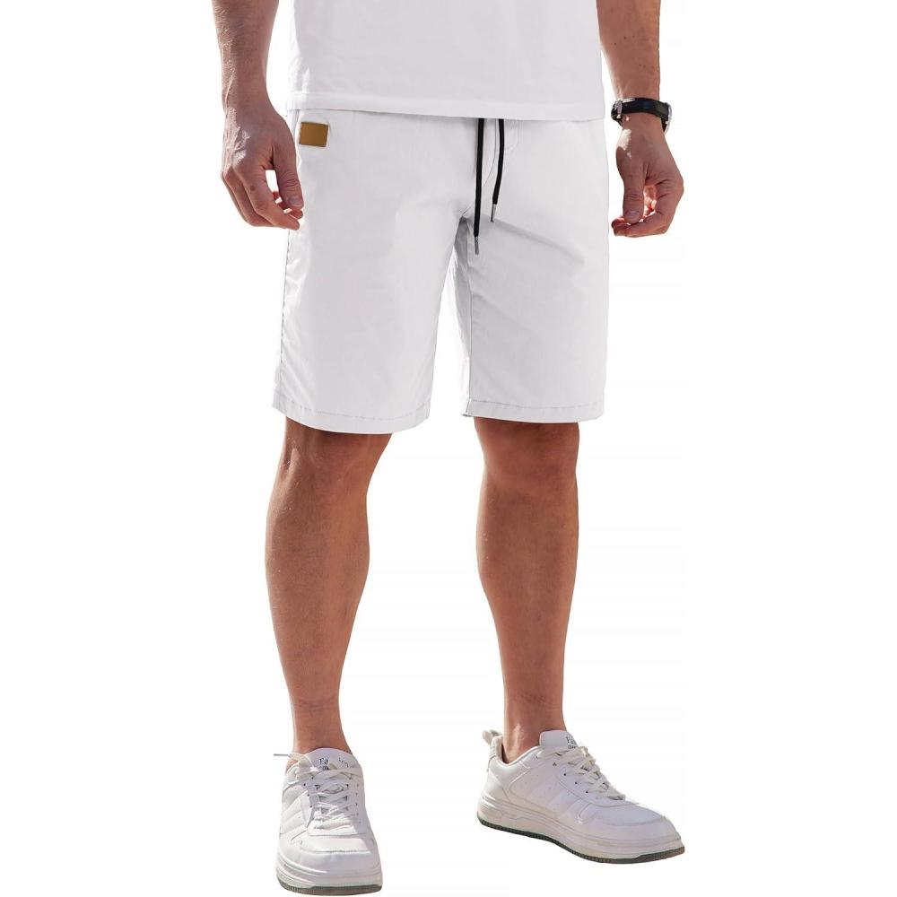 COOFANDY Mens Casual Shorts Cotton Elastic Waist Drawstring Shorts Lightweight Summer Beach Shorts(A-white)
