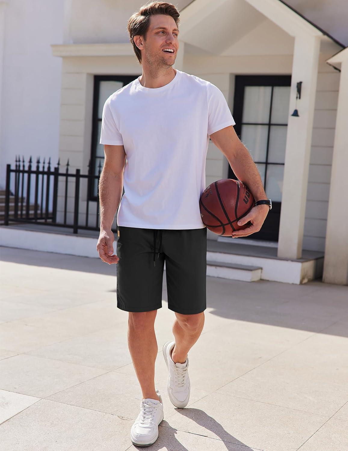 COOFANDY Mens Casual Shorts Cotton Elastic Waist Drawstring Shorts Lightweight Summer Beach Shorts(Black)