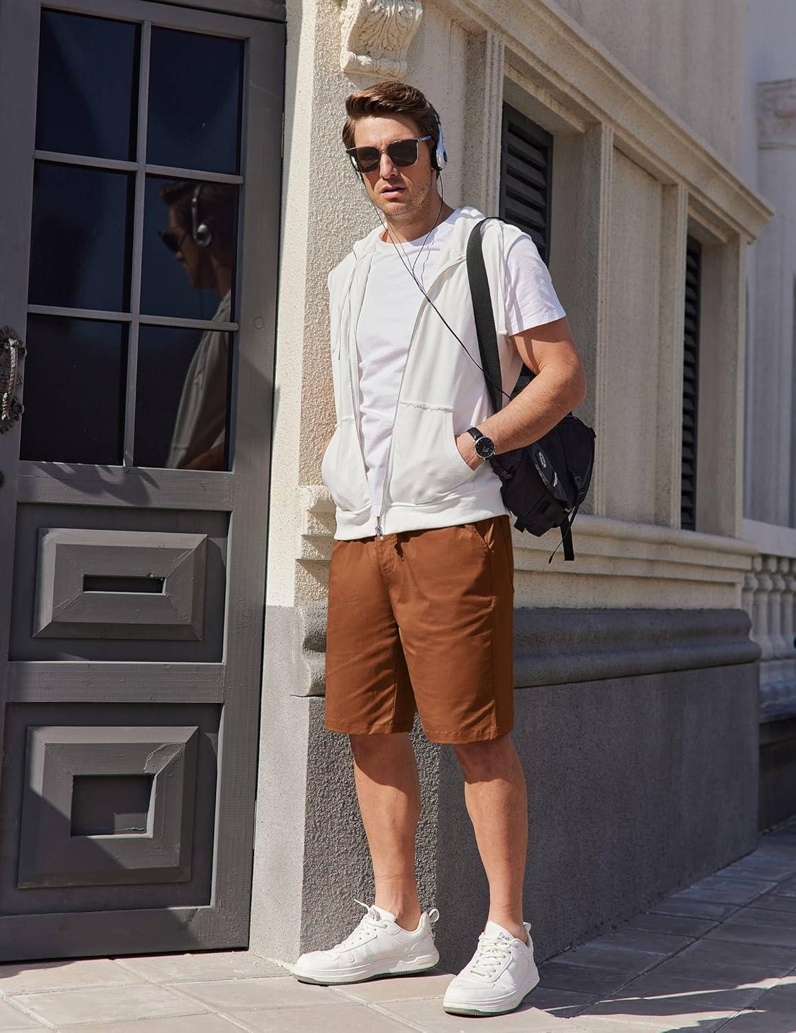 COOFANDY Mens Casual Shorts Cotton Elastic Waist Drawstring Shorts Lightweight Summer Beach Shorts(Brown-2)