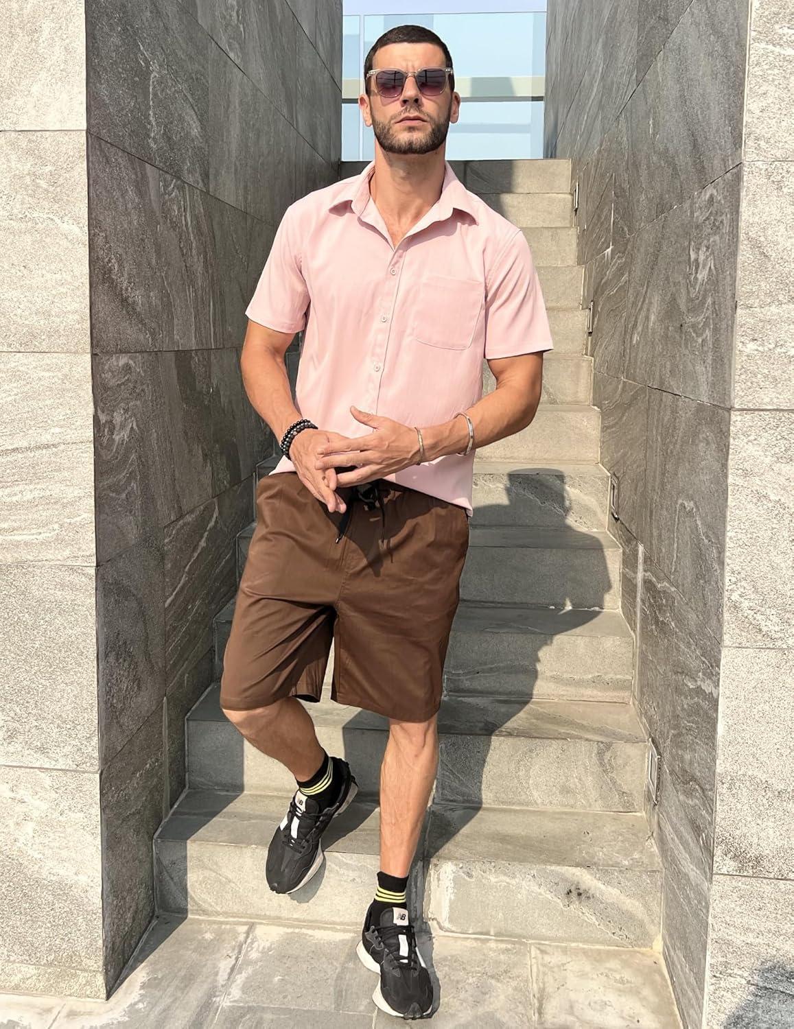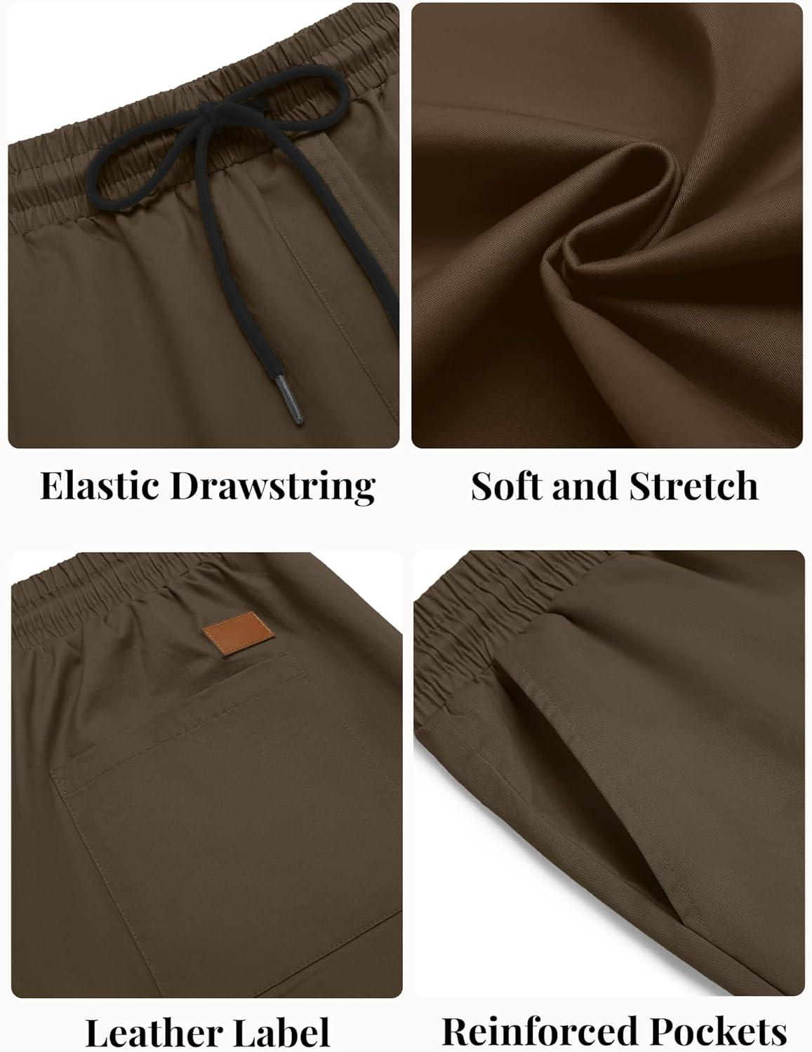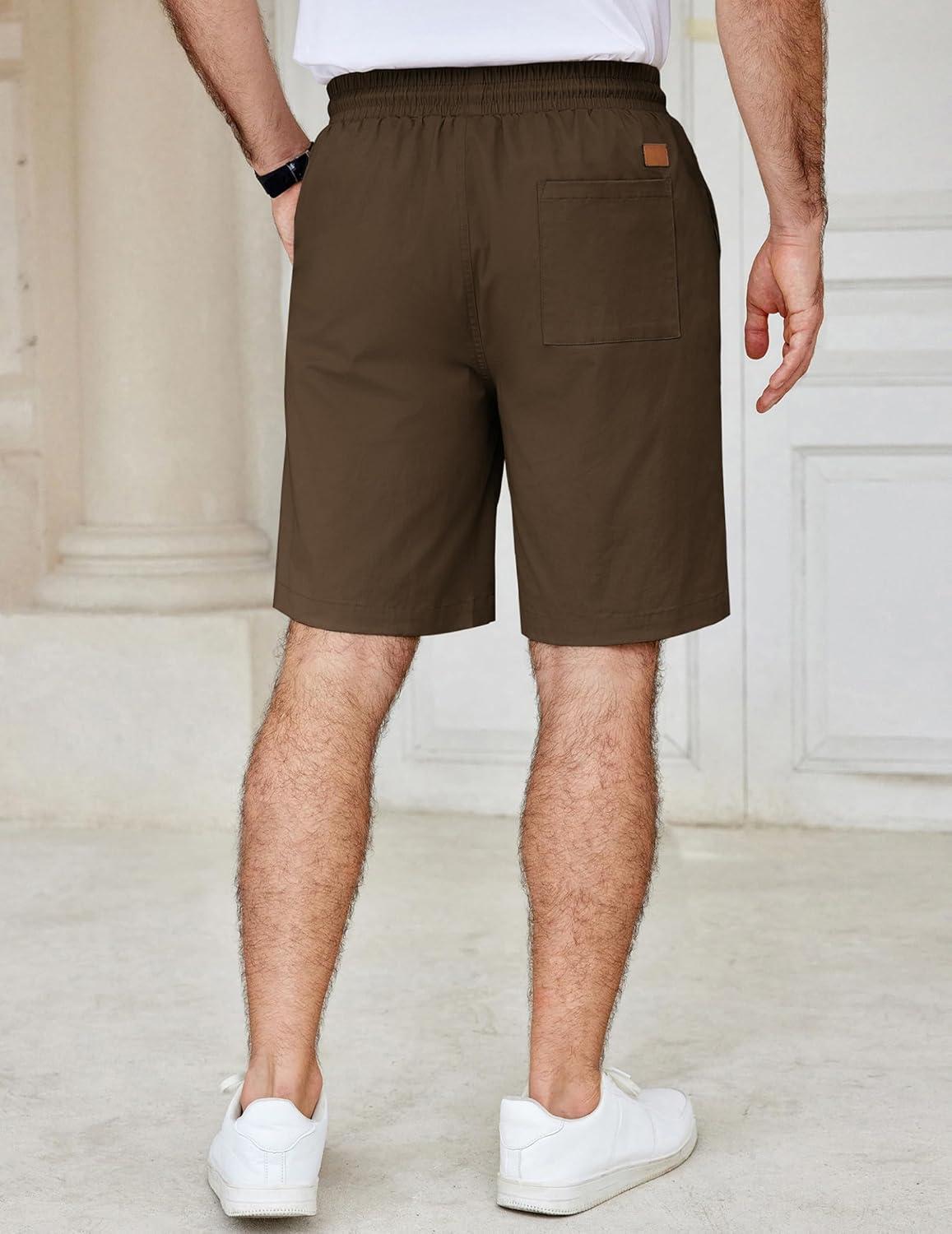 COOFANDY Men’s Casual Shorts Cotton Elastic Waist Drawstring Shorts Lightweight Summer Beach Shorts(Brown)