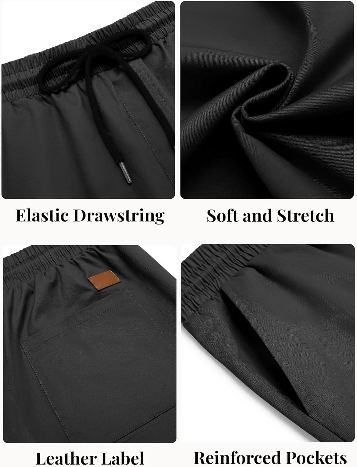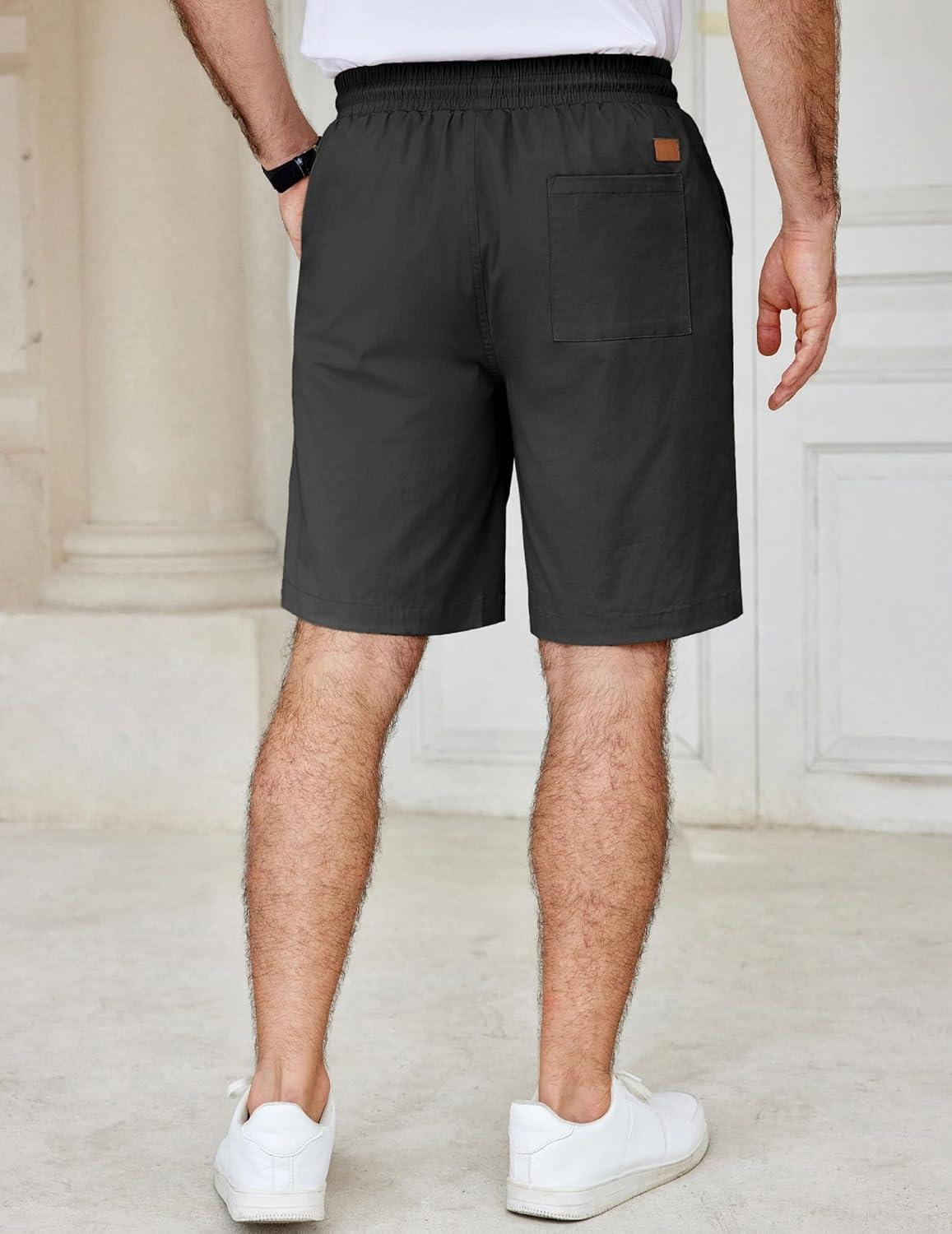 COOFANDY Men's Casual Shorts Cotton Elastic Waist Drawstring Shorts Lightweight Summer Beach Shorts(Carbon Grey)