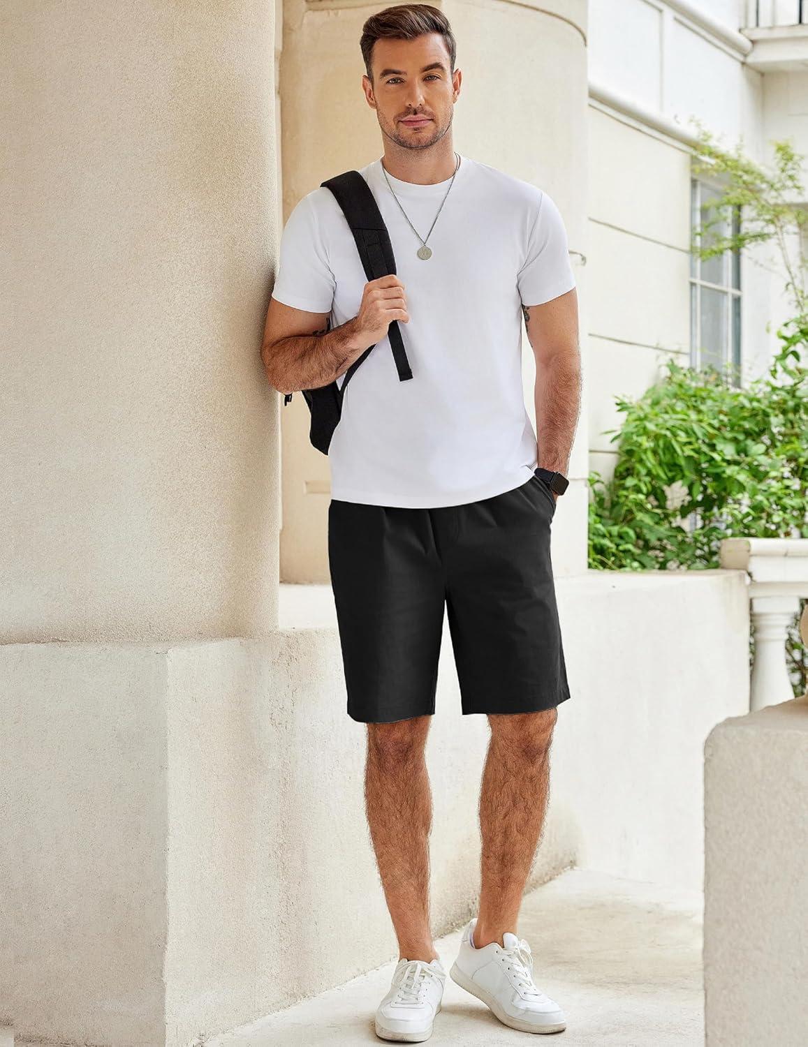 COOFANDY Men’s Casual Shorts Cotton Elastic Waist Drawstring Shorts Lightweight Summer Beach Shorts(2 Pack Dark Grey Light Khaki)