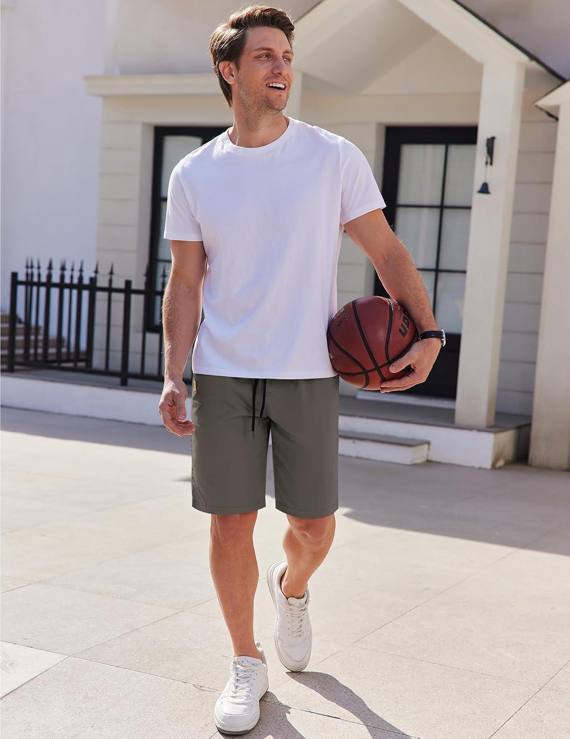 COOFANDY Mens Casual Shorts Cotton Elastic Waist Drawstring Shorts Lightweight Summer Beach Shorts(Dark Grey)