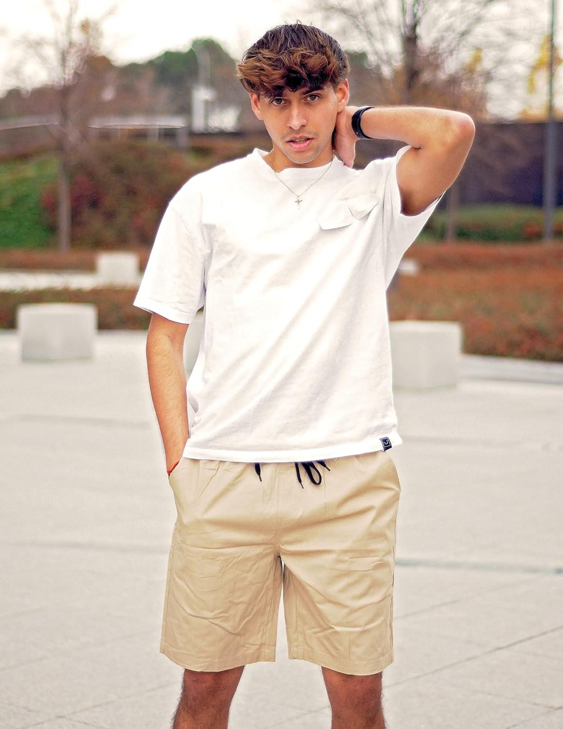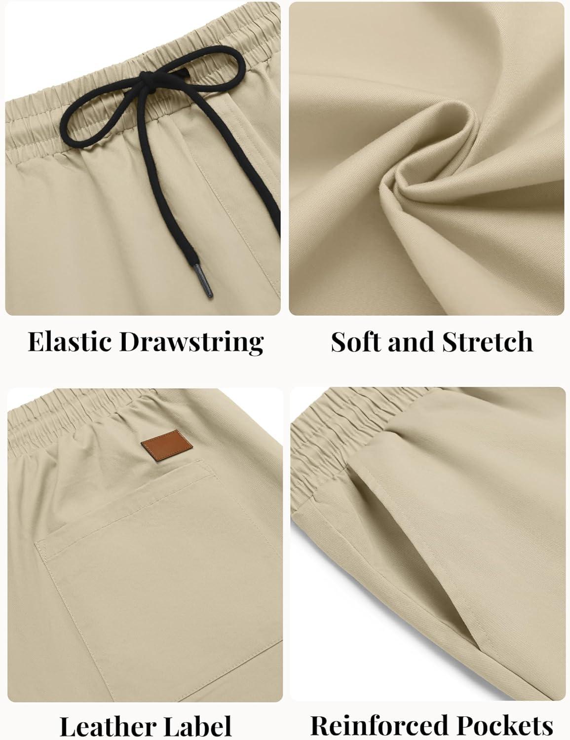 COOFANDY Men’s Casual Shorts Cotton Elastic Waist Drawstring Shorts Lightweight Summer Beach Shorts(Khaki)