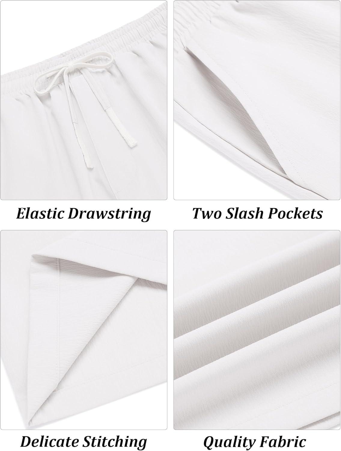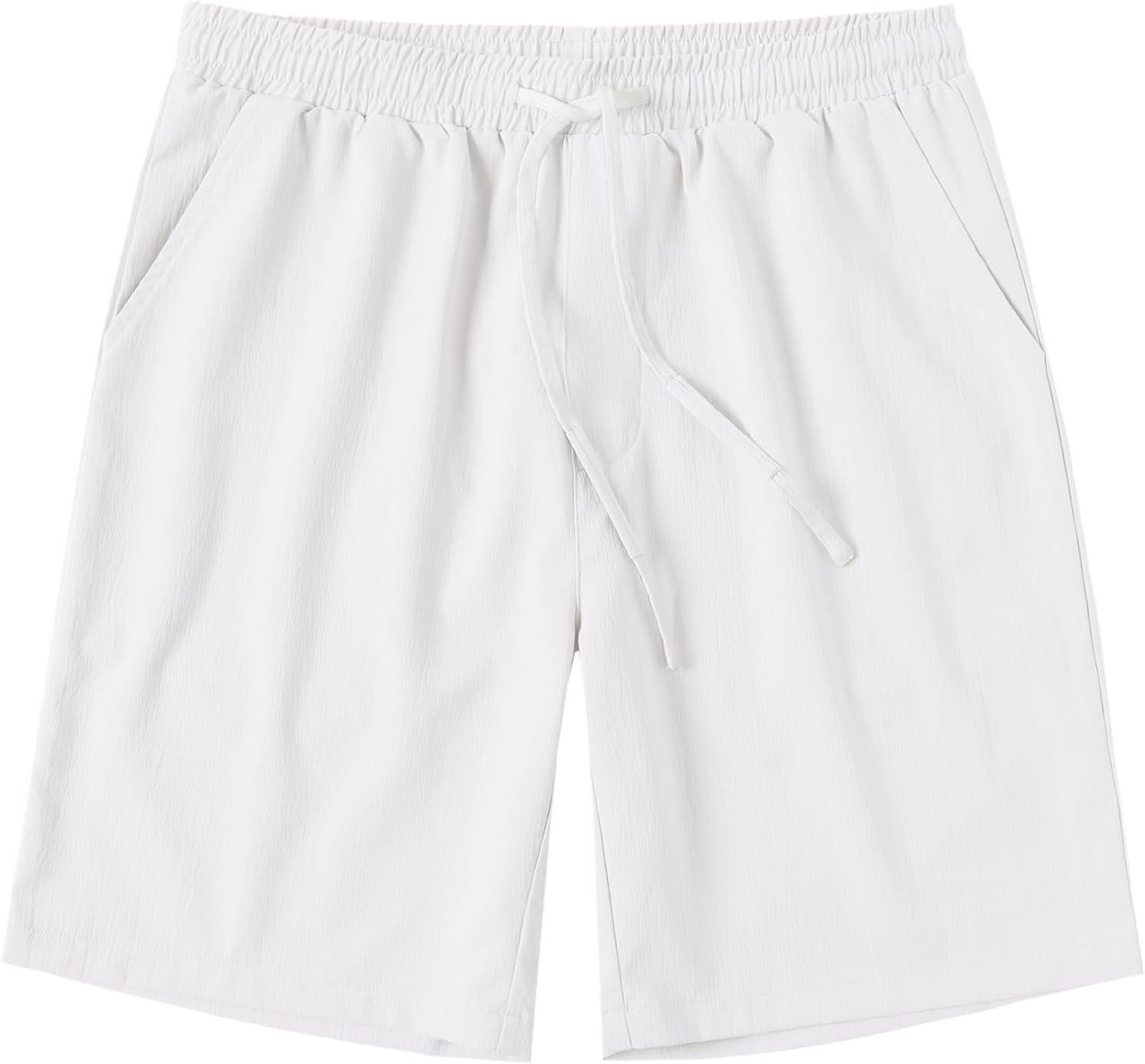 COOFANDY Men’s Casual Shorts Drawstring Summer Beach Shorts Lightweight Elastic Waist Vacation Short with Pockets(White)