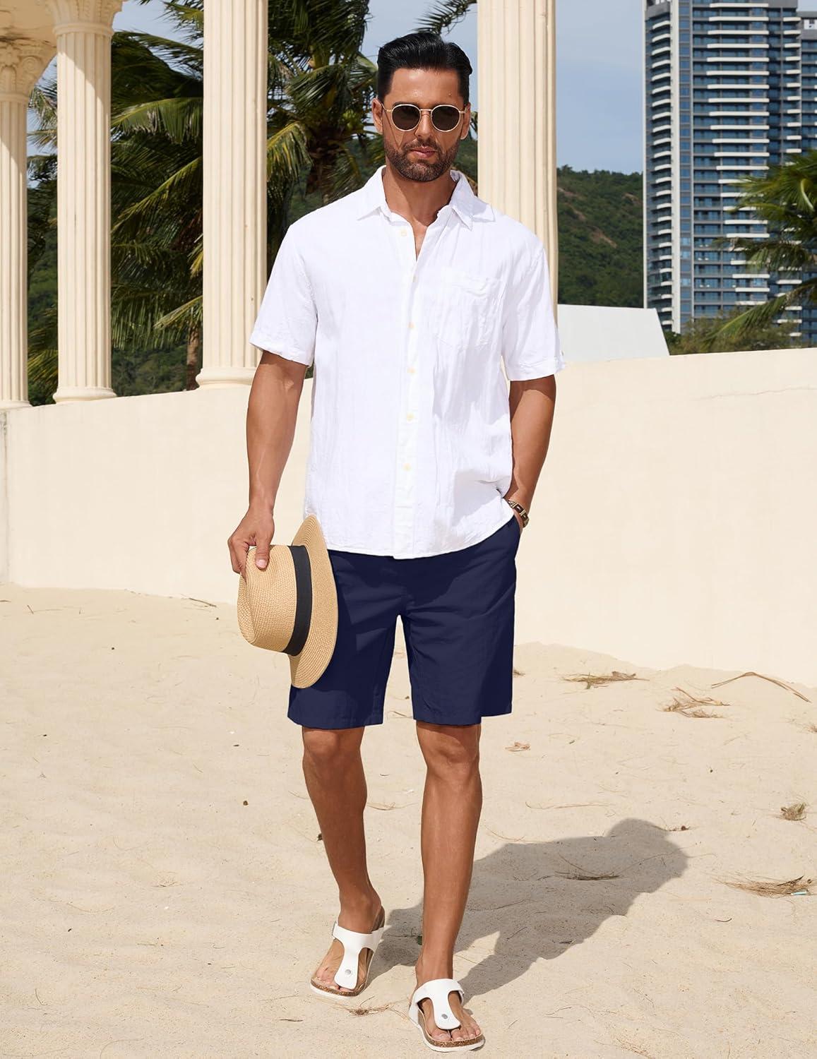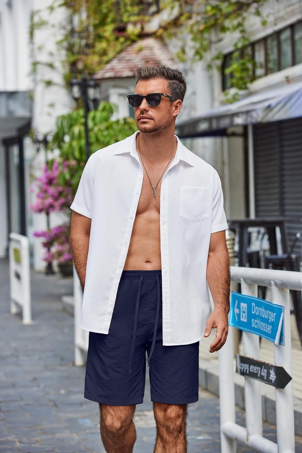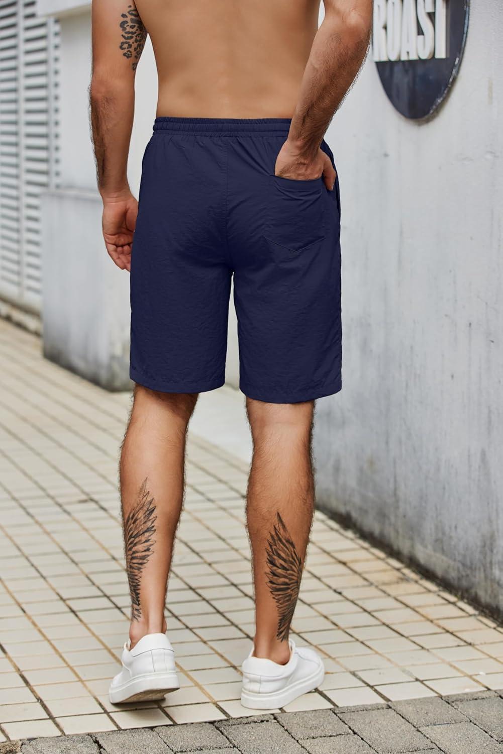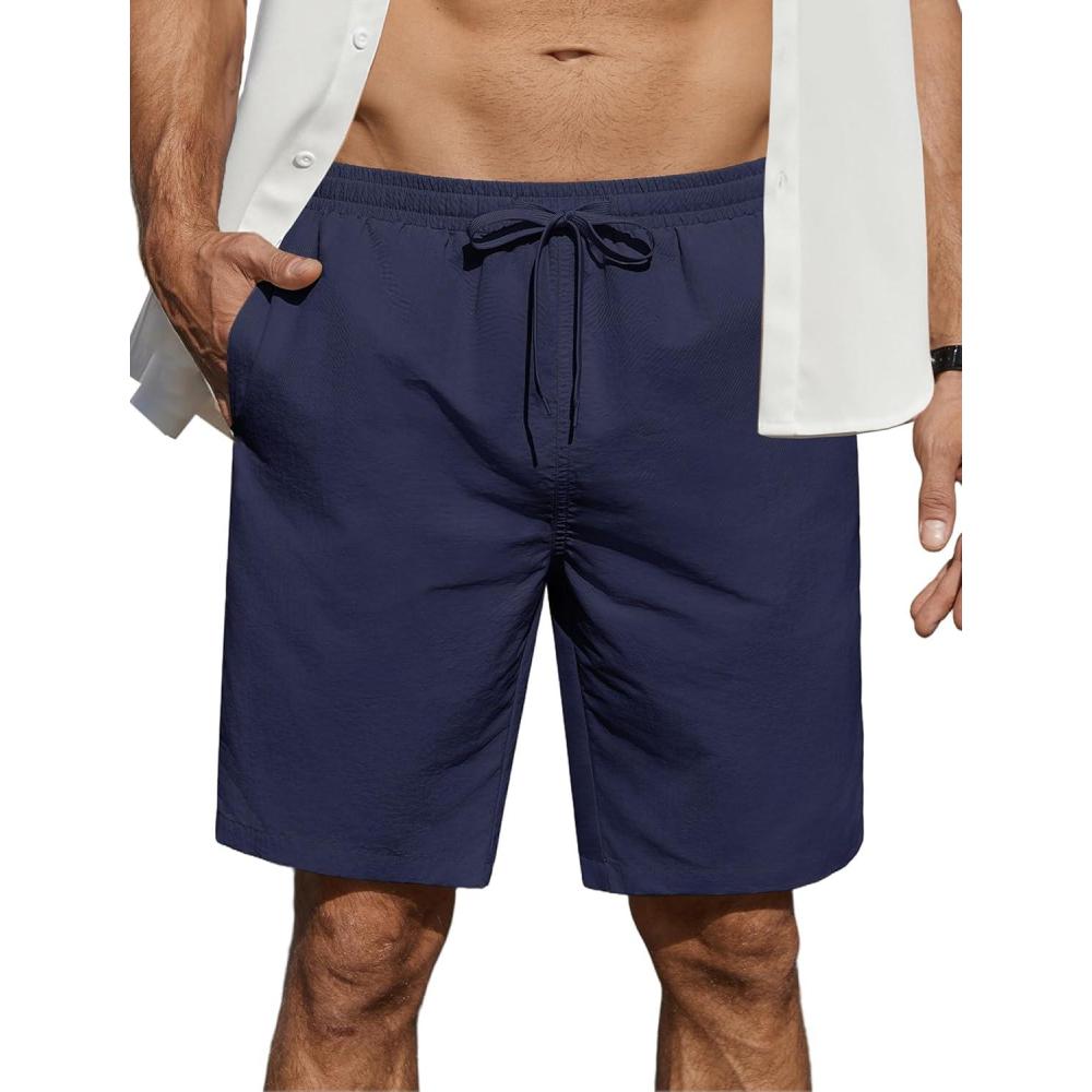 COOFANDY Men's Casual Shorts Elastic Waist Drawstring Lightweight Dry Quick Summer Beach Shorts(Navy Blue)