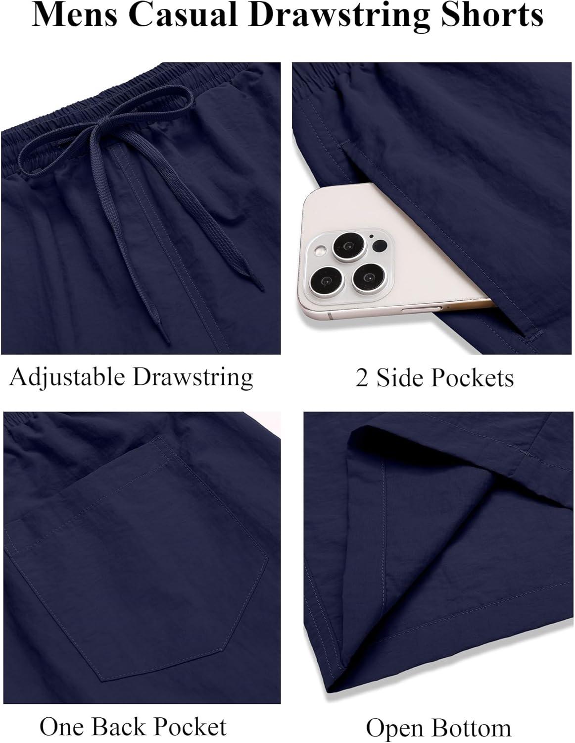 COOFANDY Men’s Casual Shorts Elastic Waist Drawstring Lightweight Dry Quick Summer Beach Shorts(Navy Blue)