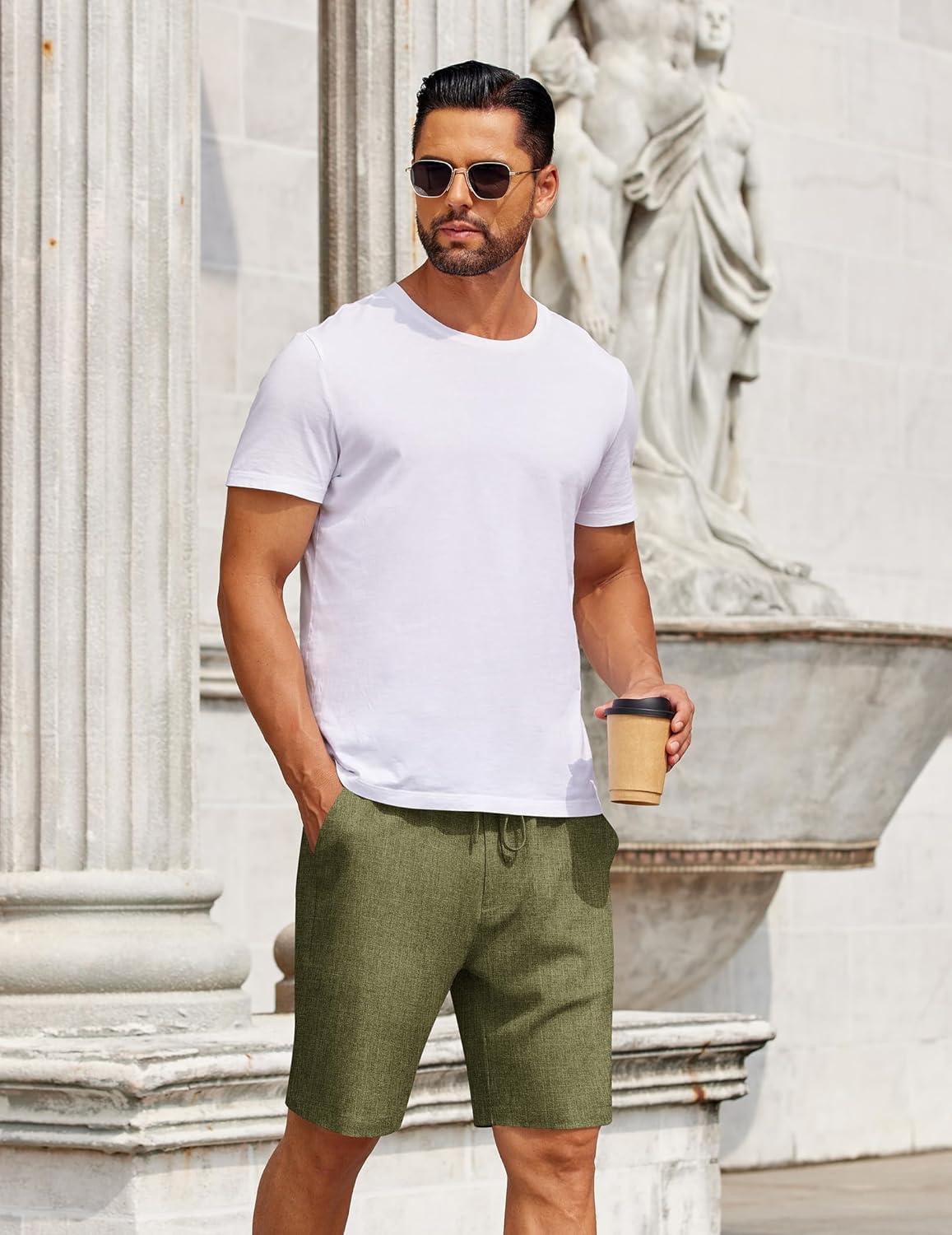 COOFANDY Mens Casual Shorts Elastic Waist Drawstring Shorts Summer Beach Linen Shorts(Army Green)