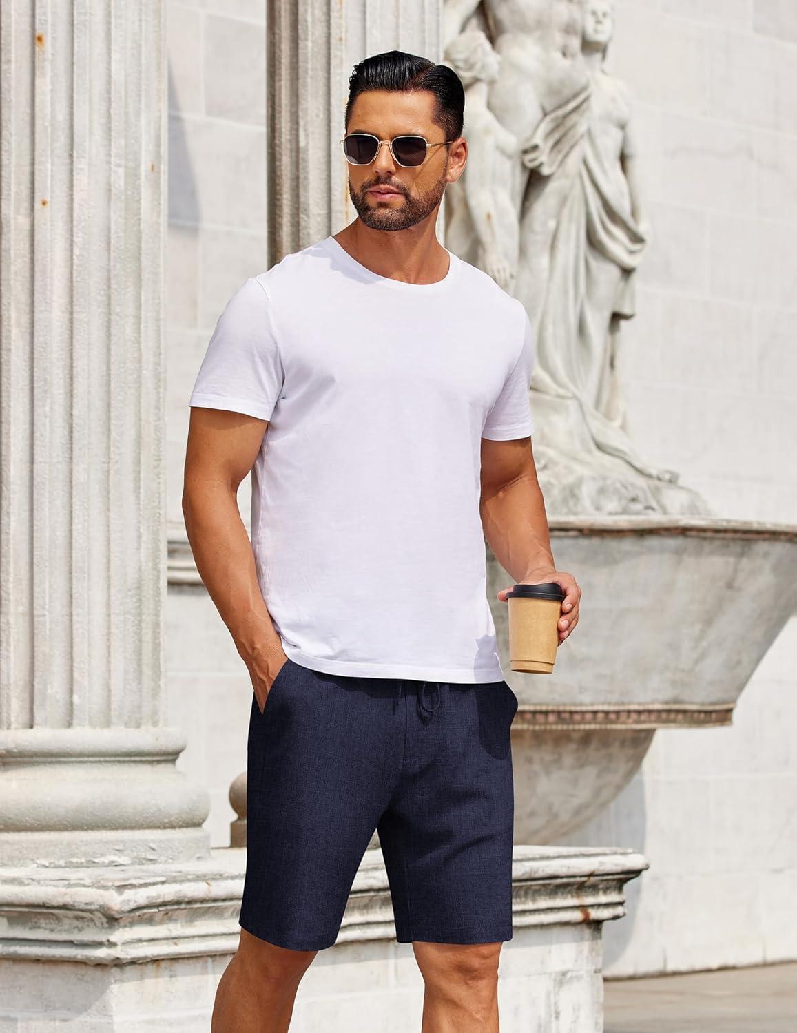 COOFANDY Mens Casual Shorts Elastic Waist Drawstring Shorts Summer Beach Linen Shorts(Dark Blue)