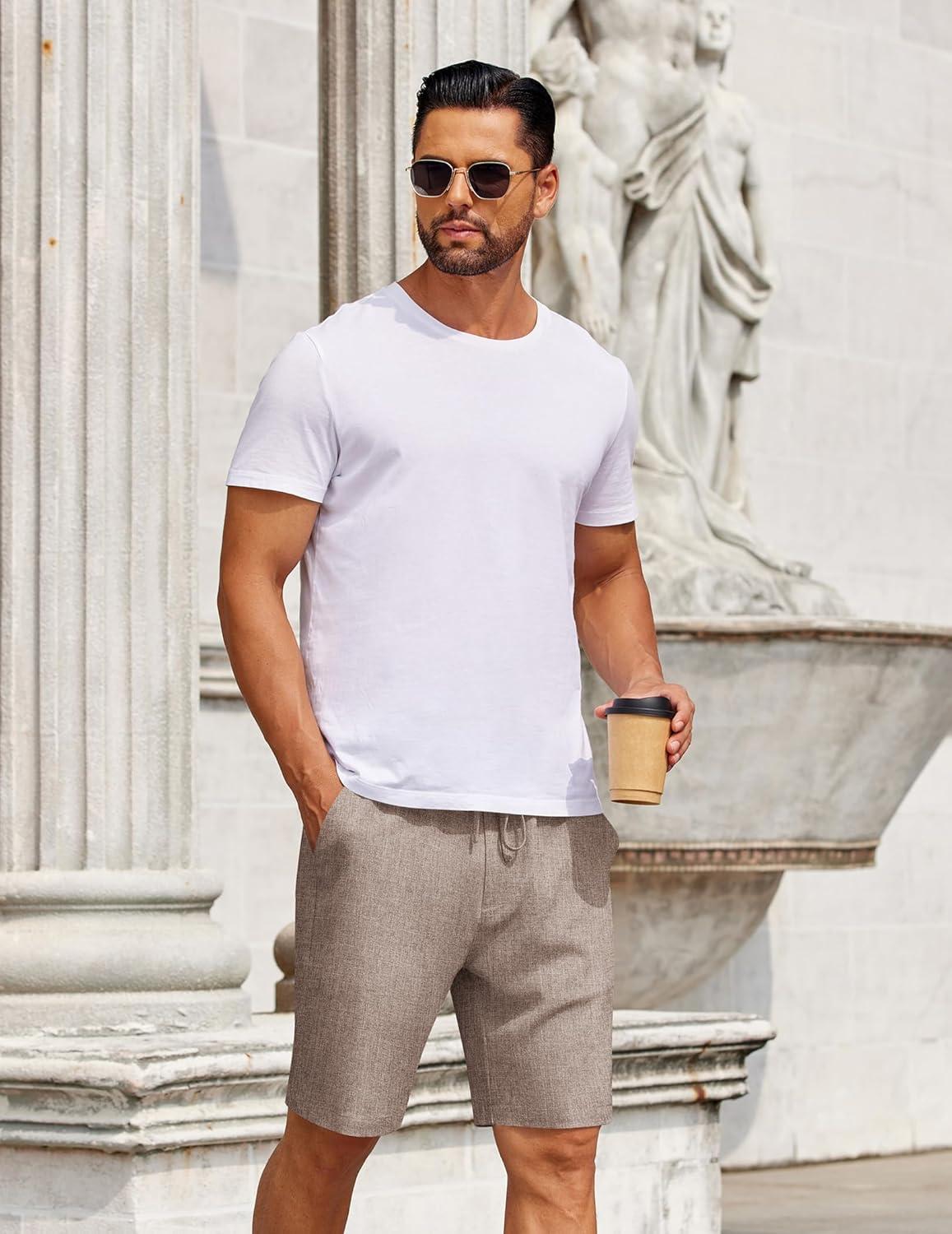 COOFANDY Mens Casual Shorts Elastic Waist Drawstring Shorts Summer Beach Linen Shorts(Khaki)