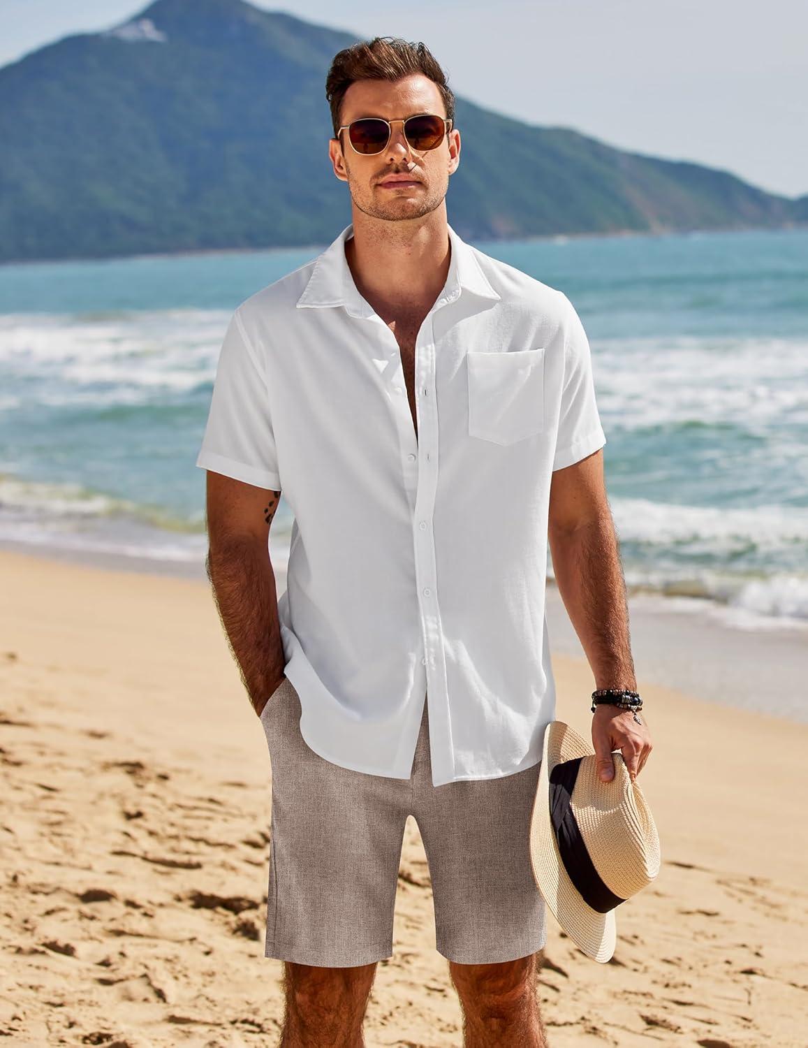 COOFANDY Mens Casual Shorts Elastic Waist Drawstring Shorts Summer Beach Linen Shorts(Light Grey)