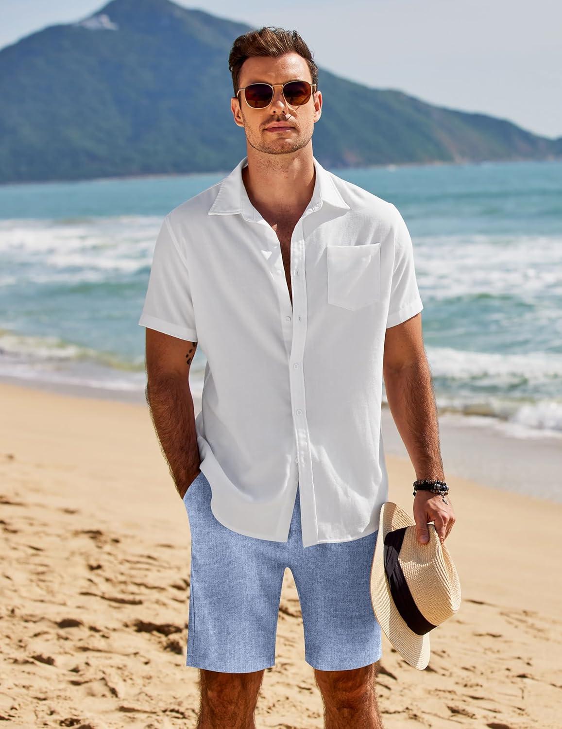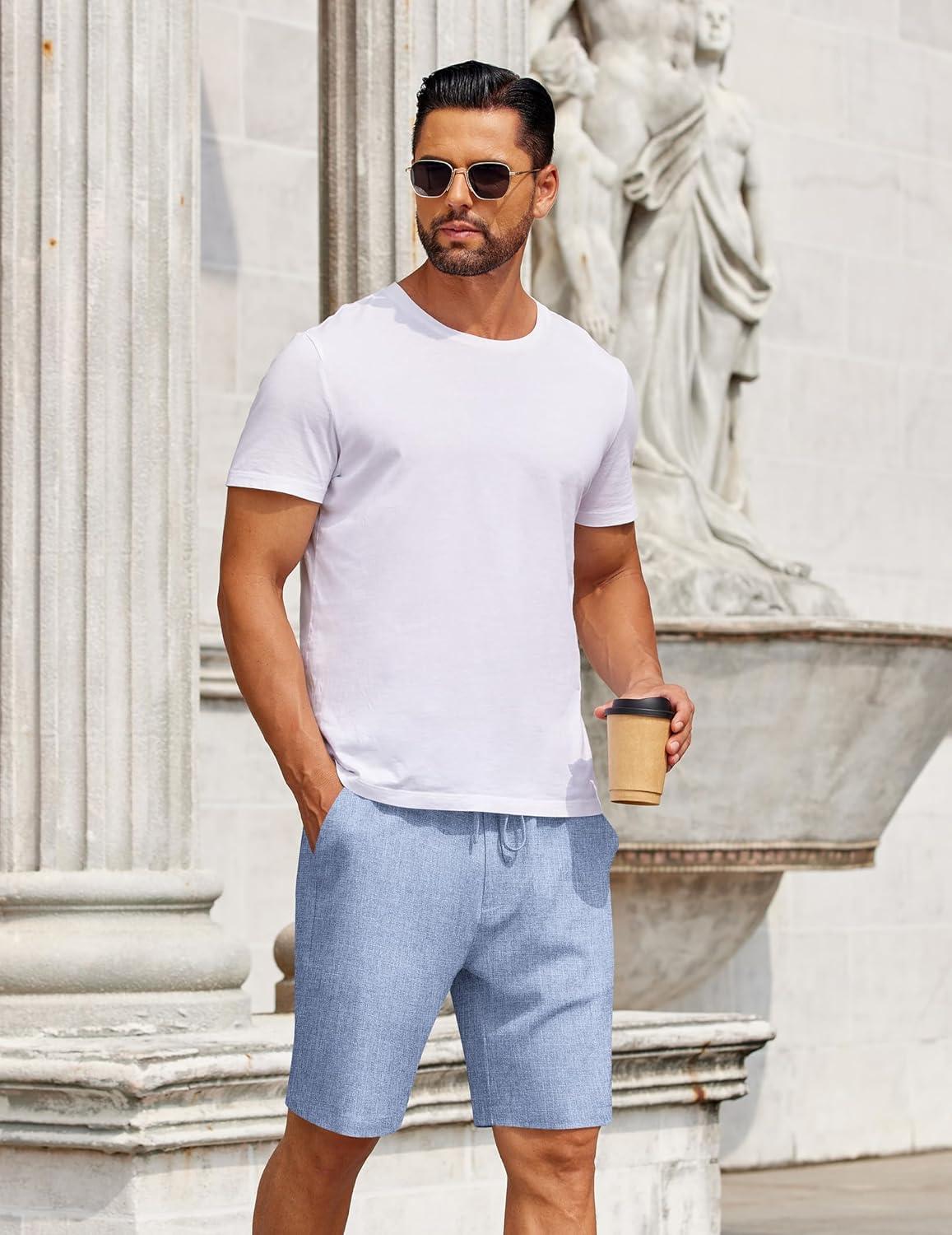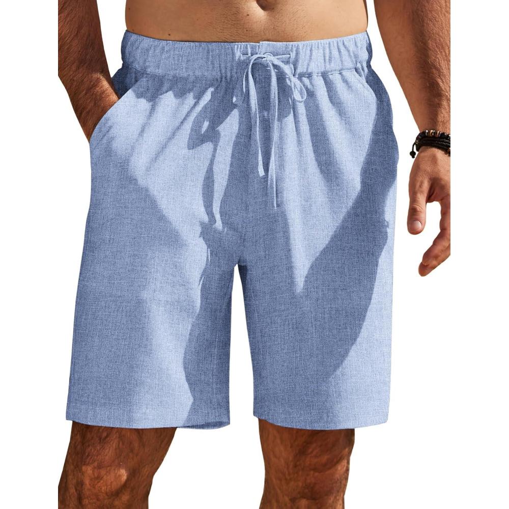 COOFANDY Mens Casual Shorts Elastic Waist Drawstring Shorts Summer Beach Linen Shorts(Light Blue)