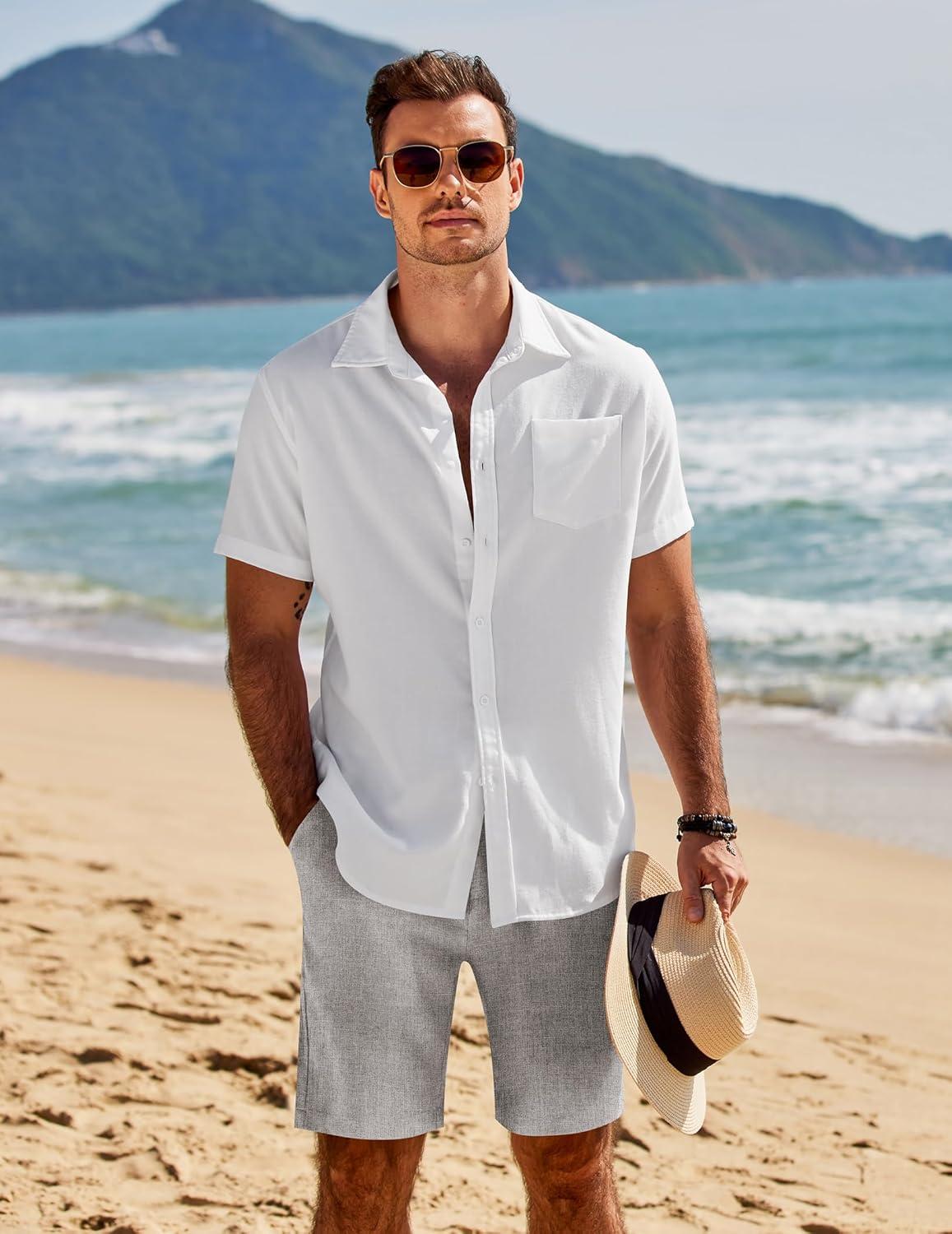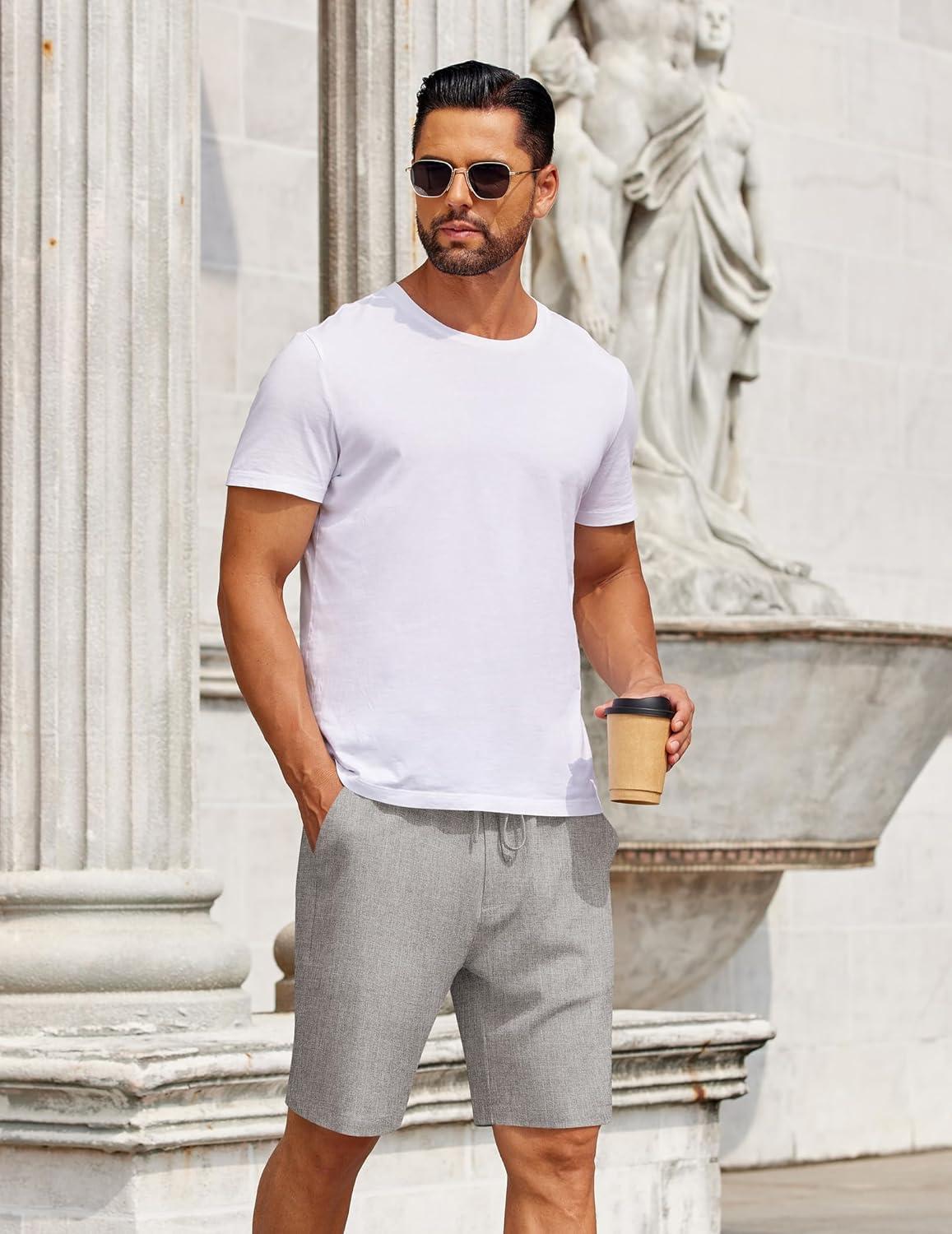 COOFANDY Mens Casual Shorts Elastic Waist Drawstring Shorts Summer Beach Linen Shorts(Light Grey)