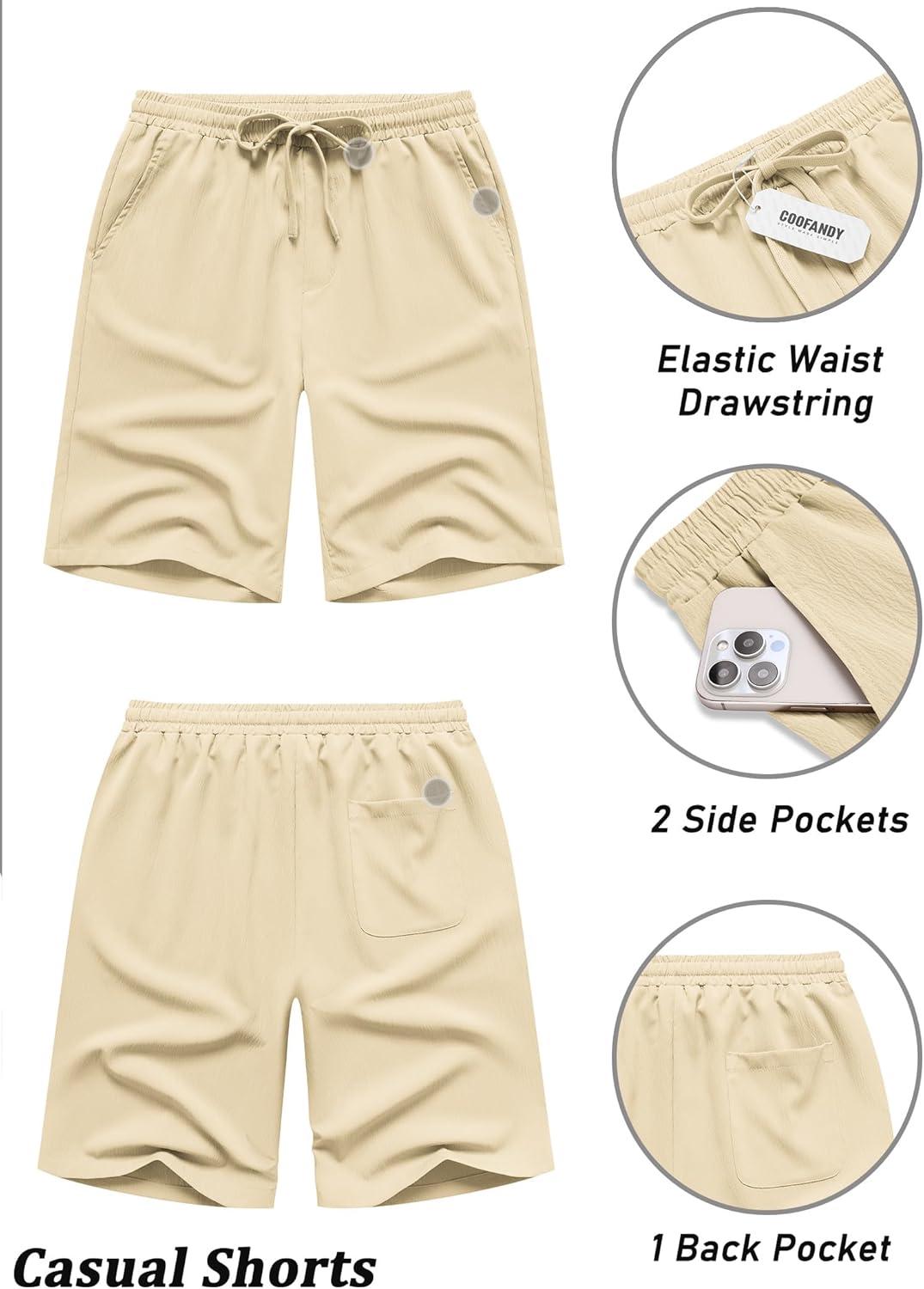 COOFANDY Men's Casual Shorts Lightweight Elastic Waist Drawstring Summer Beach Shorts with Pockets(Cream-colored)