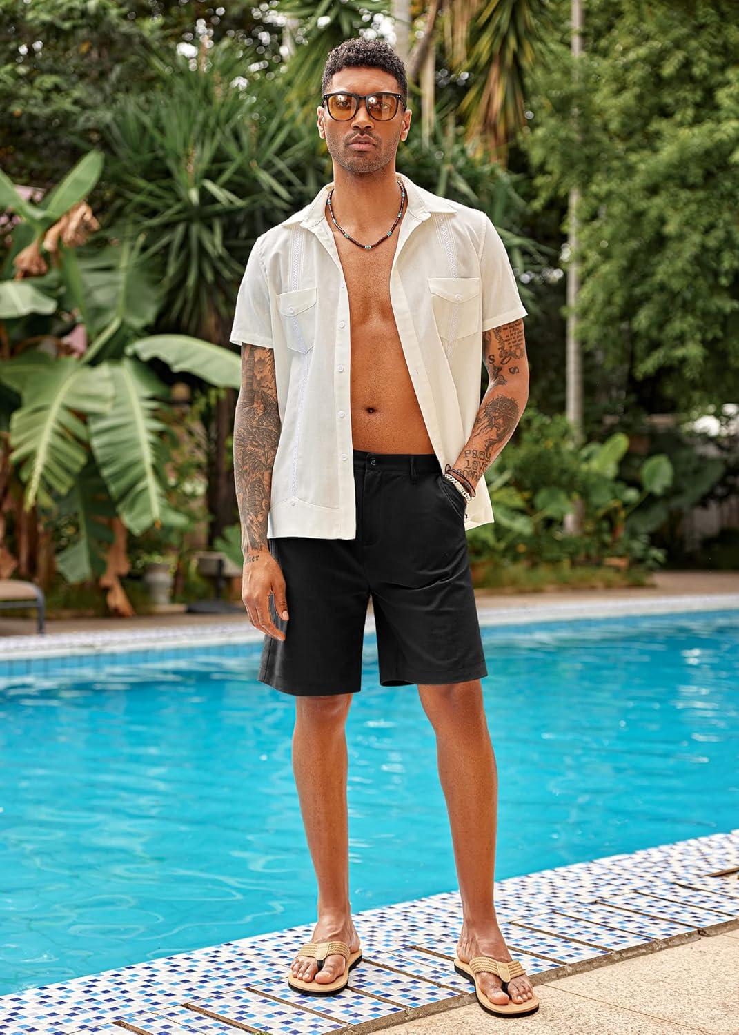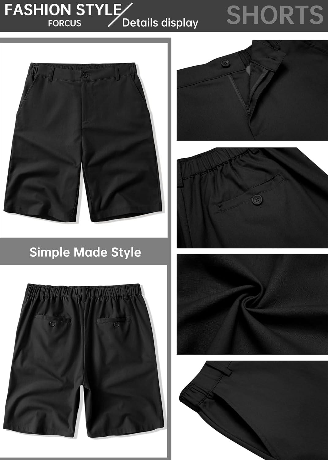 COOFANDY Men's Casual Shorts Linen Flat Front Shorts Elastic Waist Summer Beach Shorts(Black)