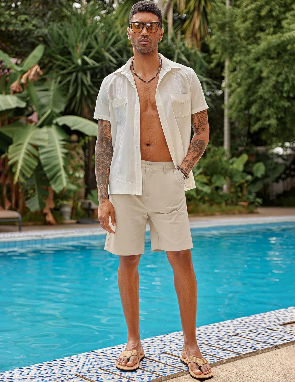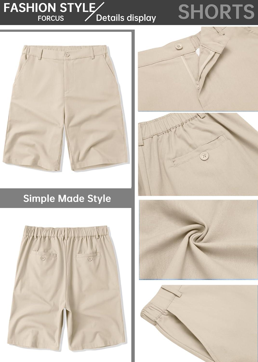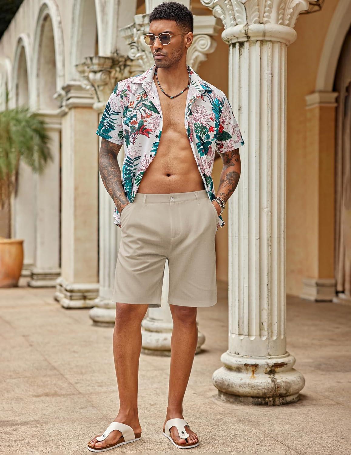 COOFANDY Men's Casual Shorts Linen Flat Front Shorts Elastic Waist Summer Beach Shorts(Light Khaki)