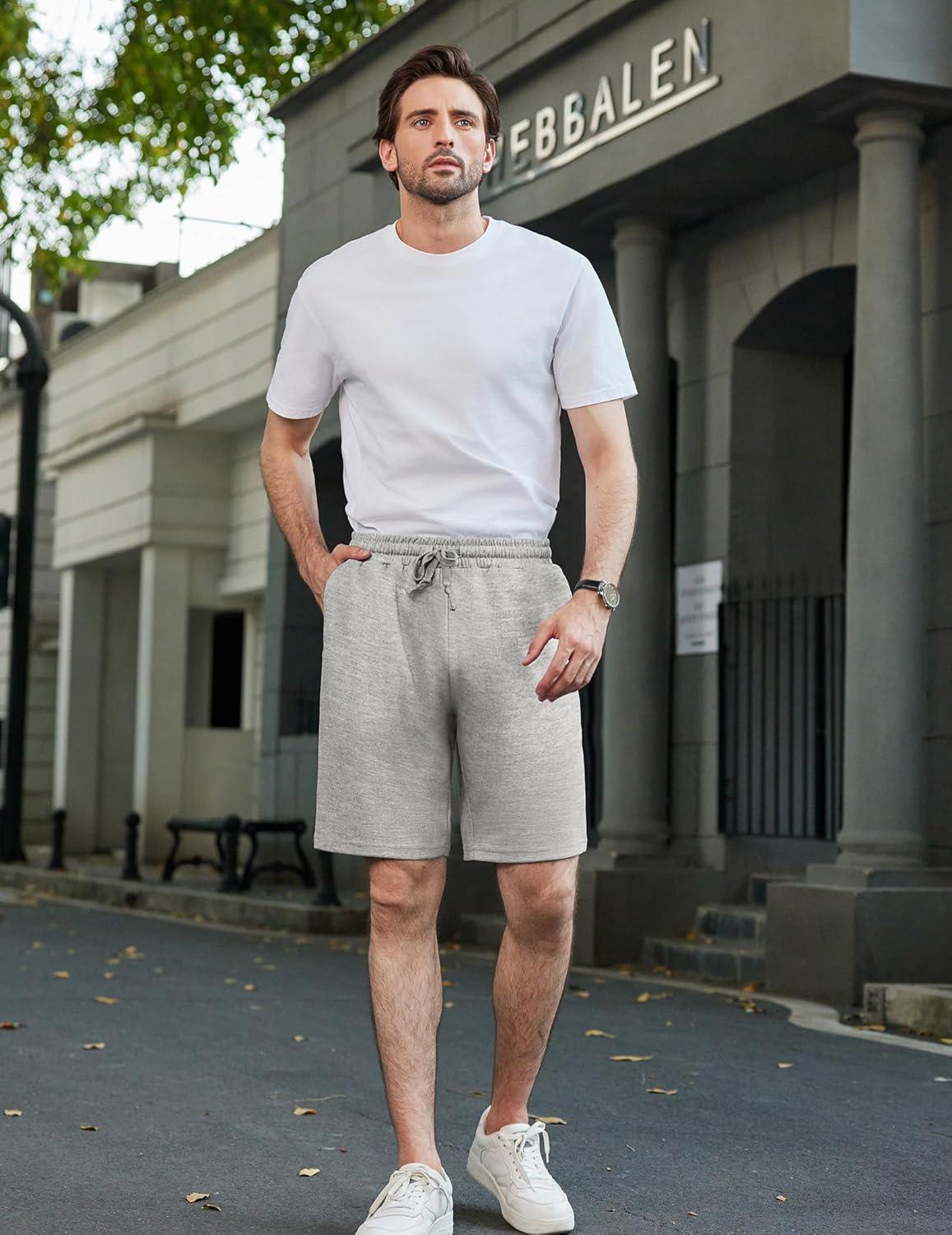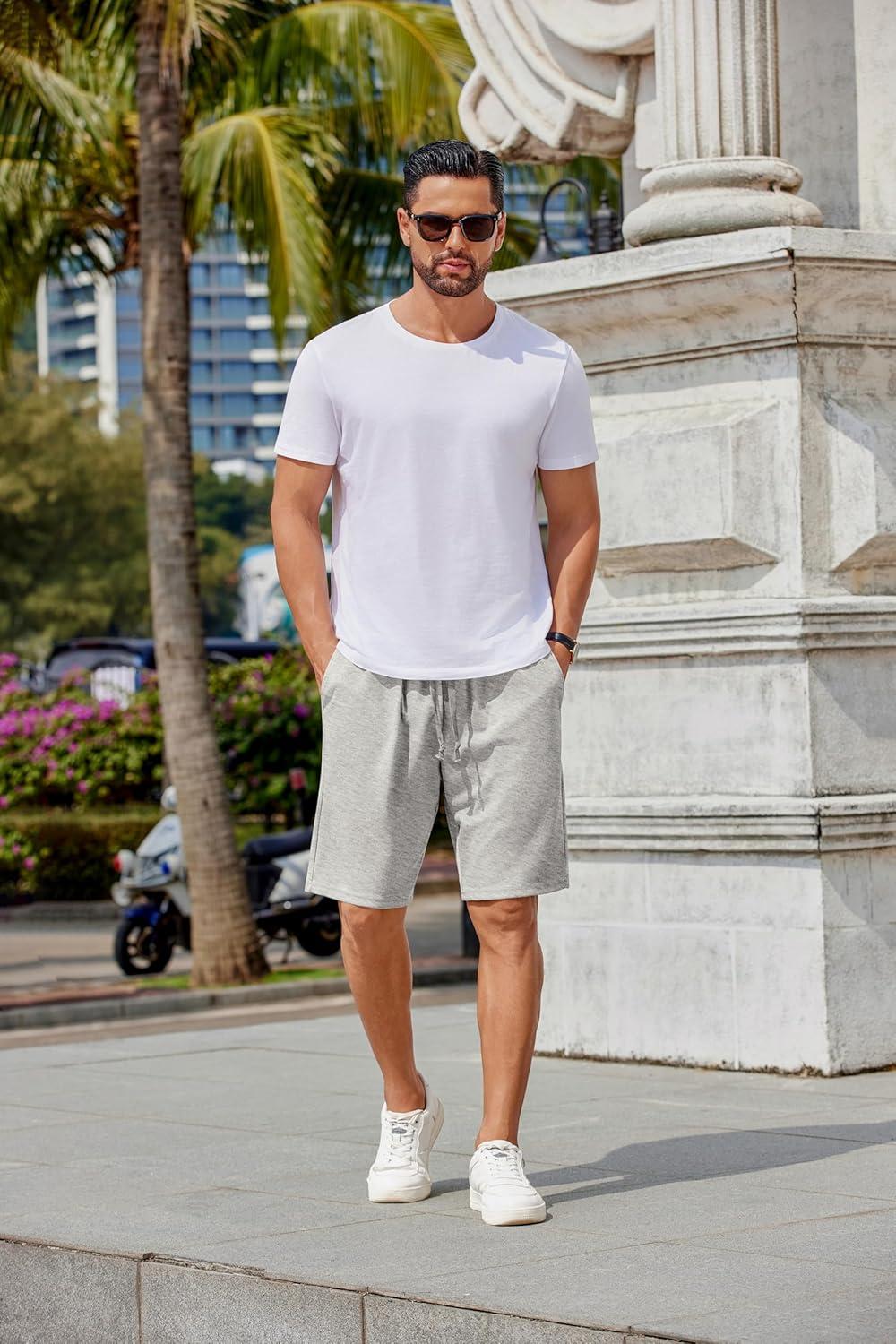 COOFANDY Mens Casual Shorts Stretch Drawstring Summer Beach Shorts Chino Golf Shorts with Pockets(Light Grey)