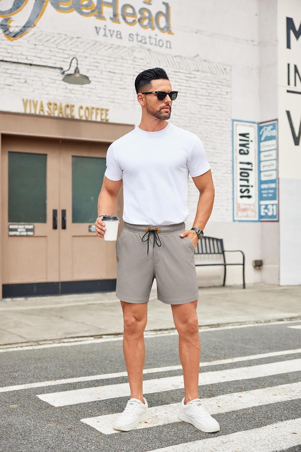 COOFANDY Men’s Casual Shorts Waffle Elastic Waist Drawstring Shorts Lightweight Summer Beach Shorts(Light Grey)
