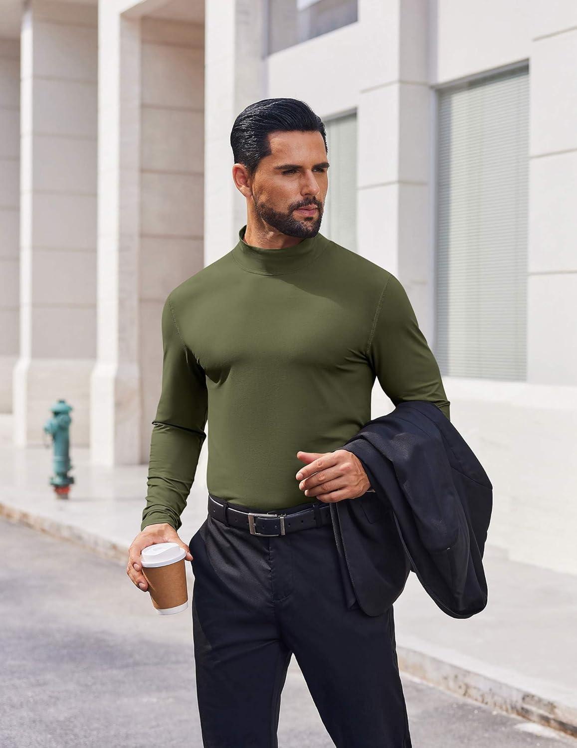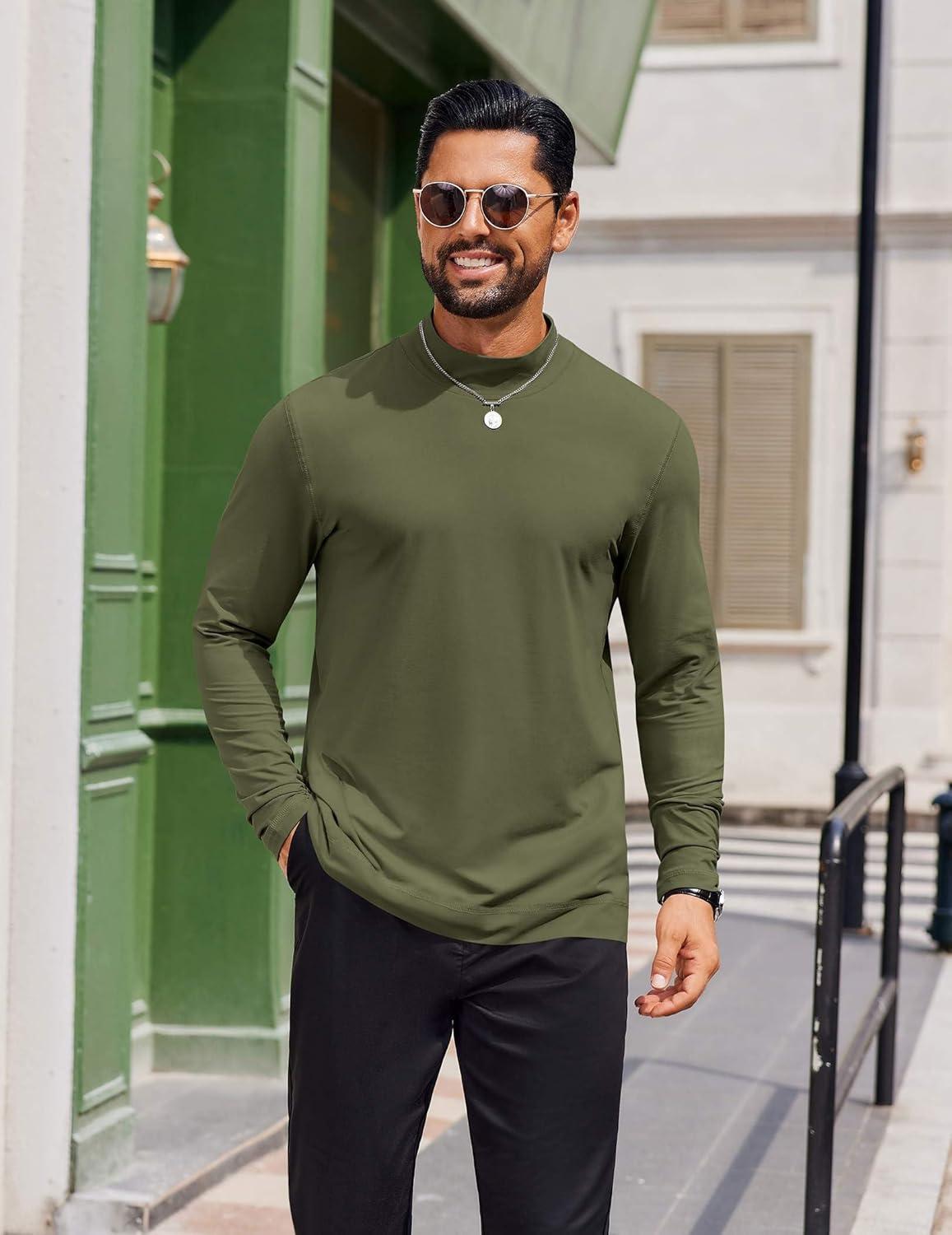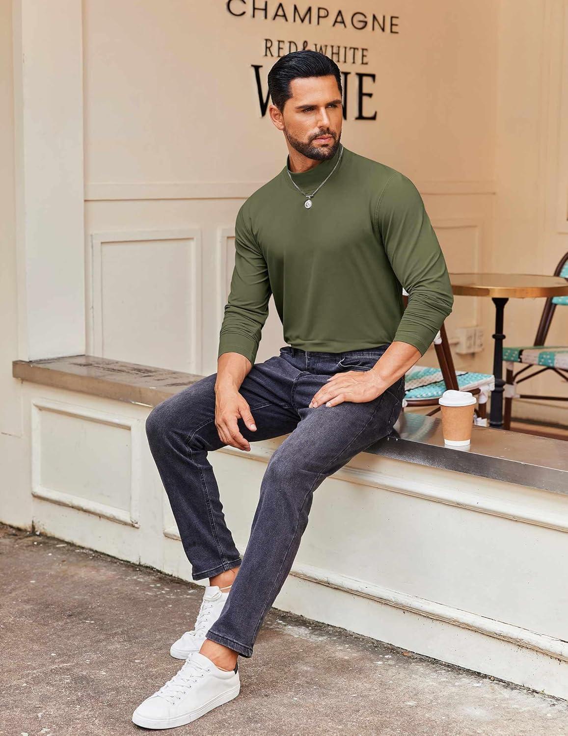 COOFANDY Men's Casual Slim Fit Basic Tops Knitted Lightweight Turtleneck Pullover Sweater(Army Green)