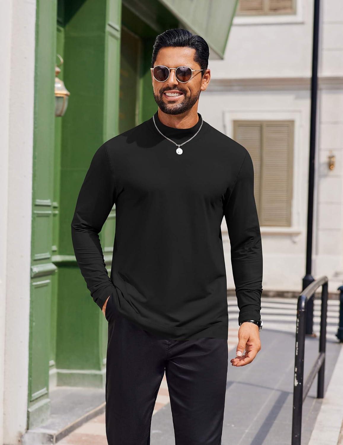 COOFANDY Men's Casual Slim Fit Basic Tops Knitted Lightweight Turtleneck Pullover Sweater(Black)