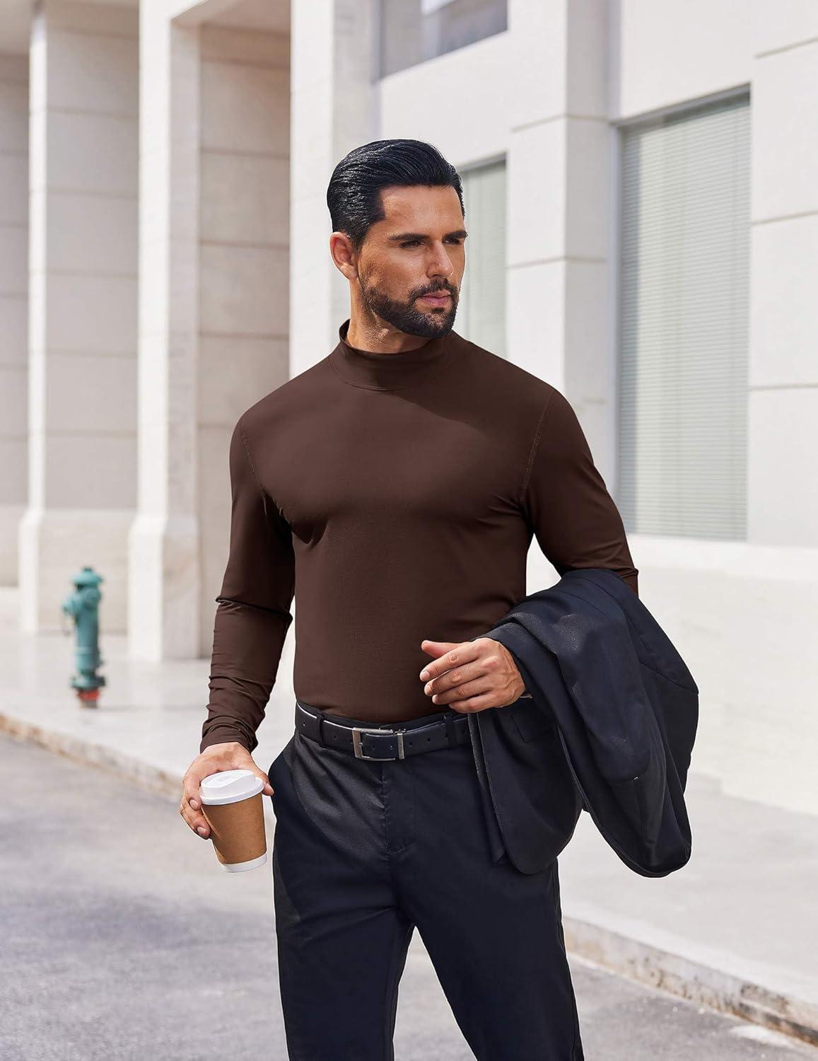 imageCOOFANDY Mens Casual Slim Fit Basic Tops Knitted Lightweight Turtleneck Pullover SweaterBrown