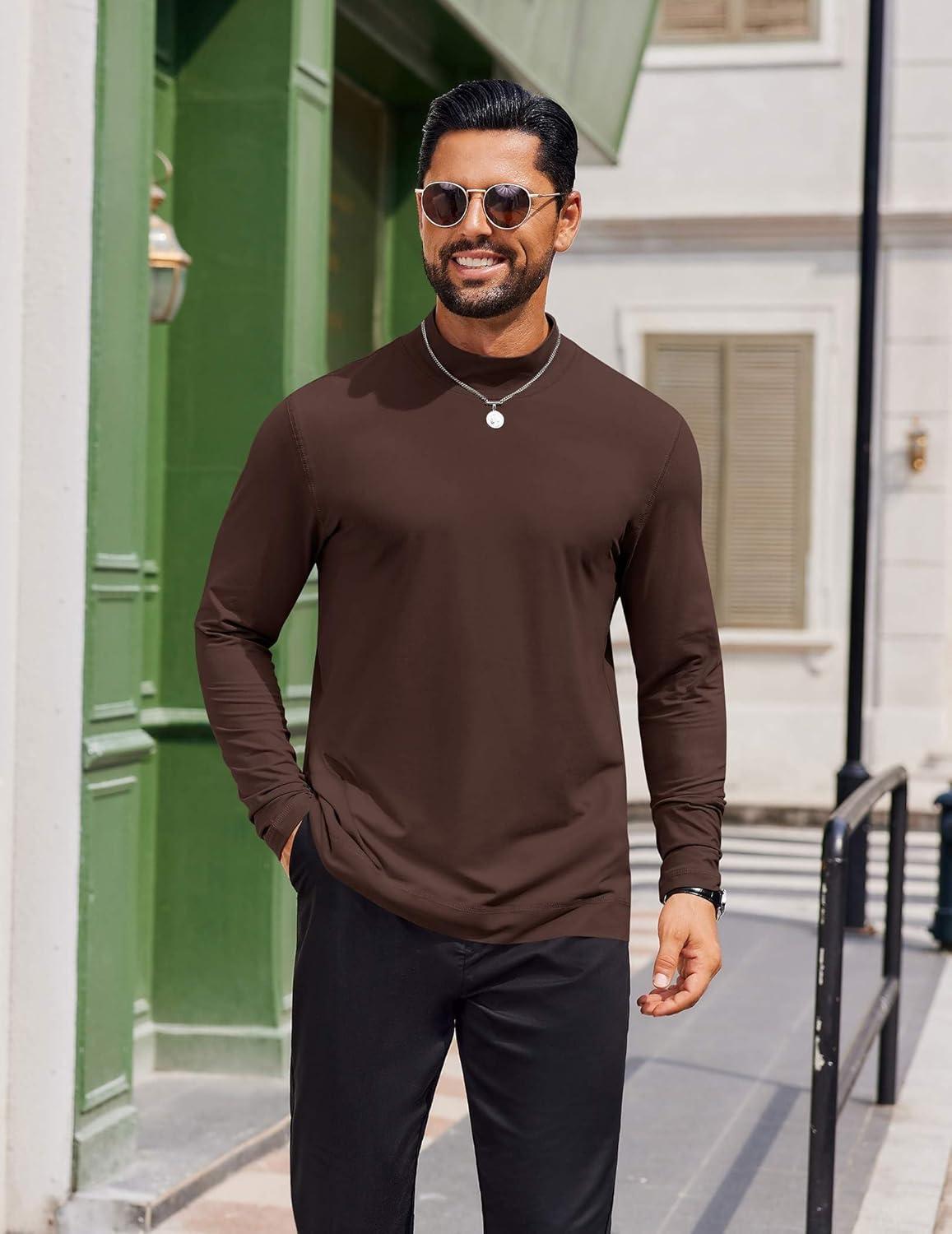 COOFANDY Men's Casual Slim Fit Basic Tops Knitted Lightweight Turtleneck Pullover Sweater(Brown)