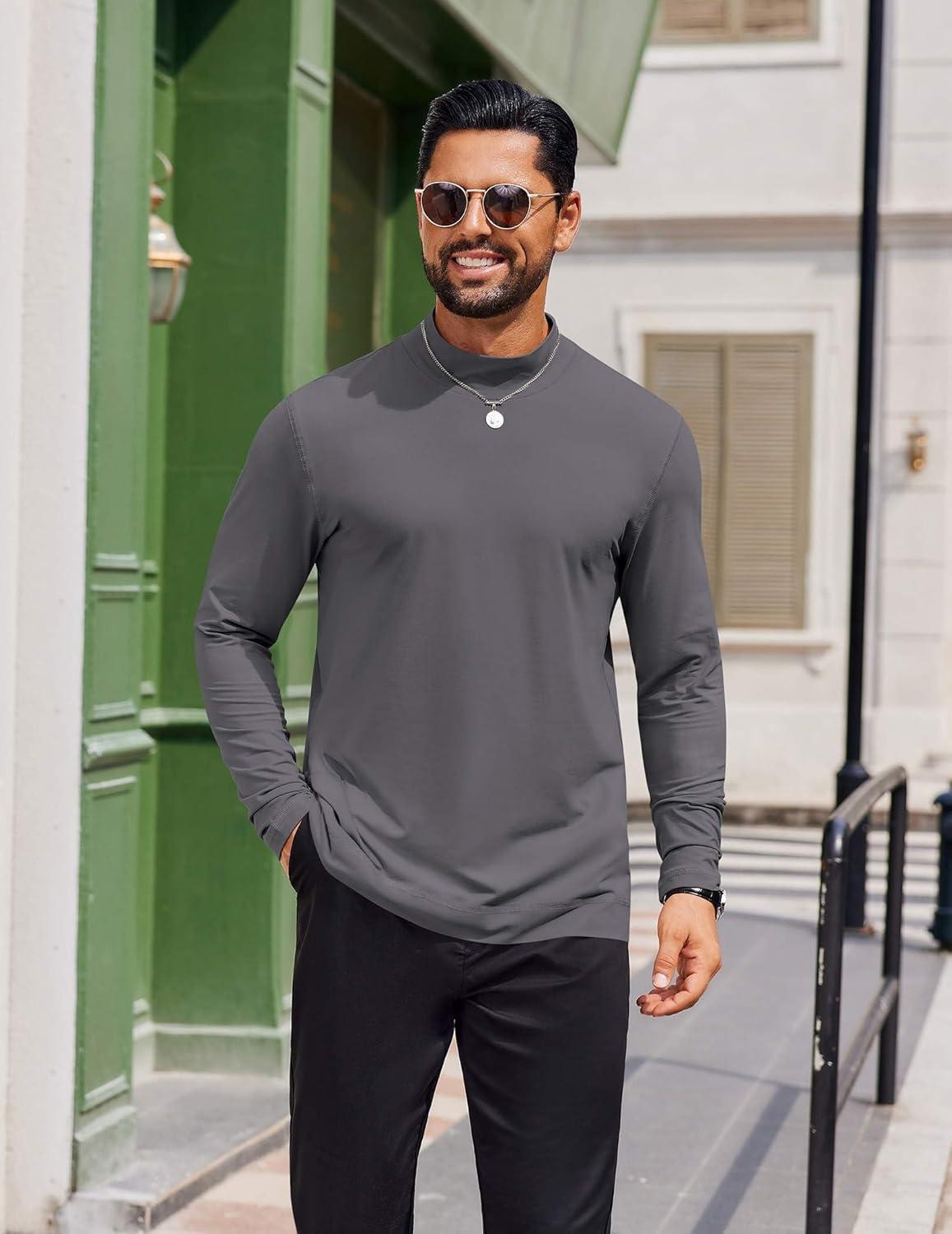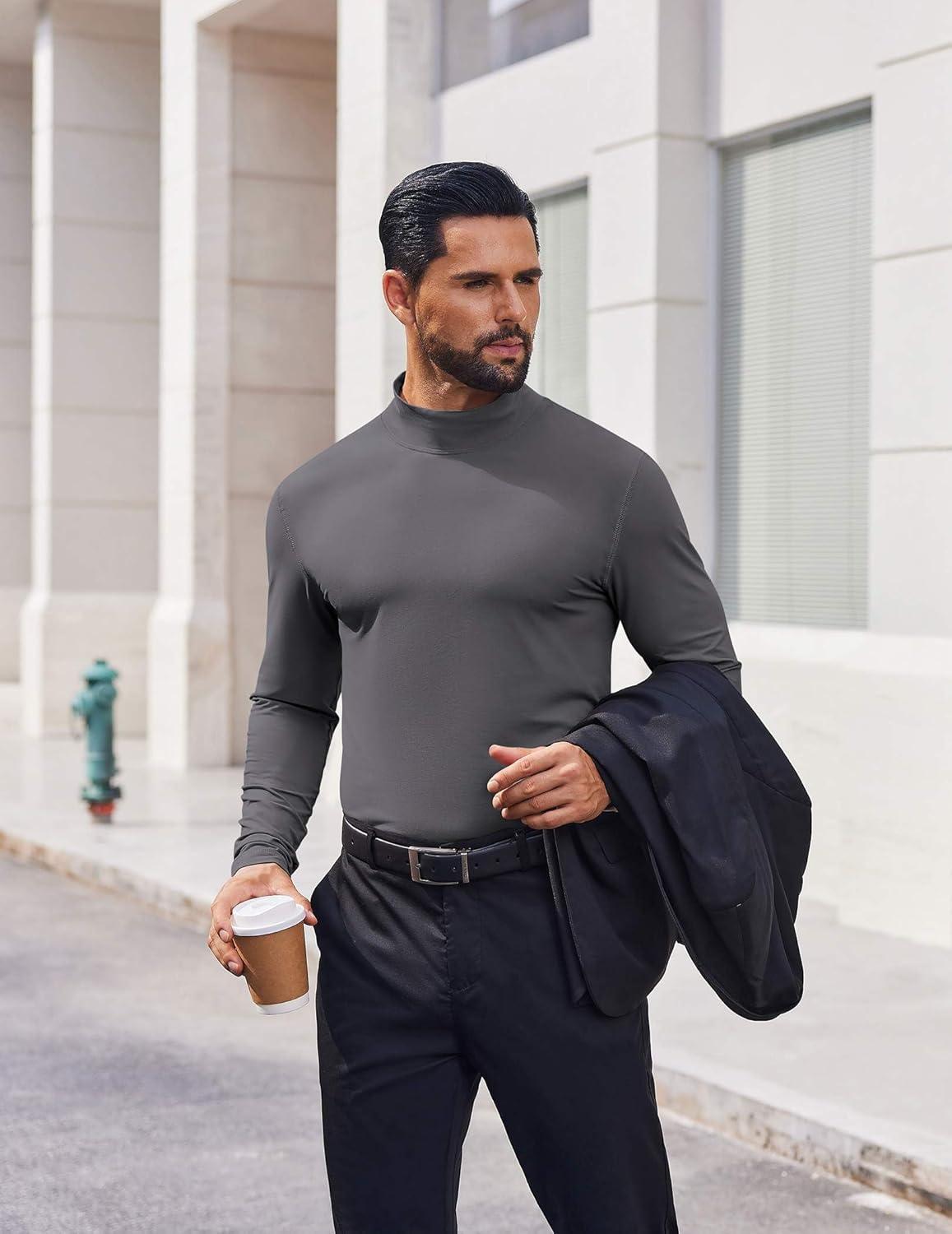 COOFANDY Men's Casual Slim Fit Basic Tops Knitted Lightweight Turtleneck Pullover Sweater(Dark Grey)