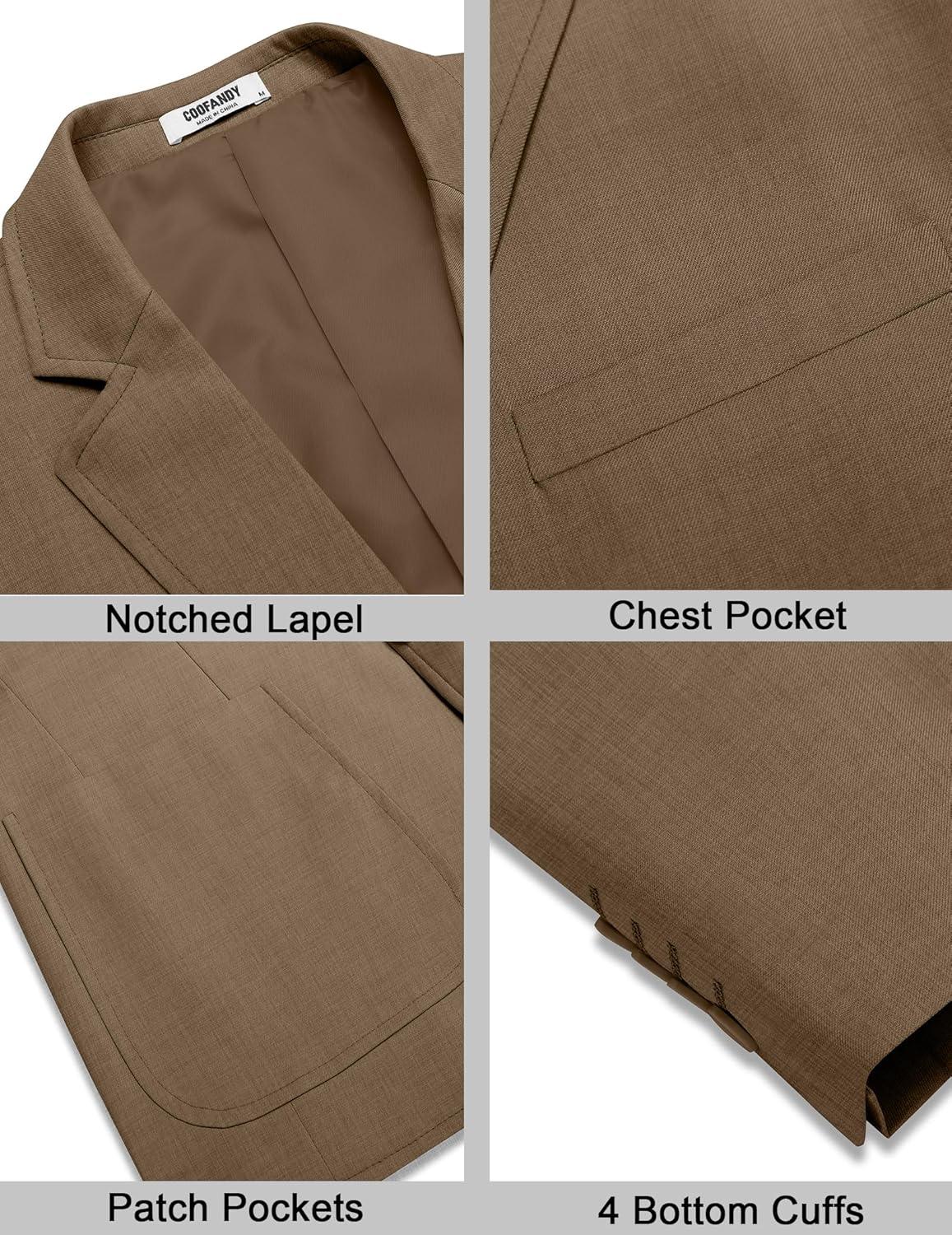 COOFANDY Mens Casual Sport Coat Lightweight Two Button Blazer Slim Fit Business Jackets(Brown)