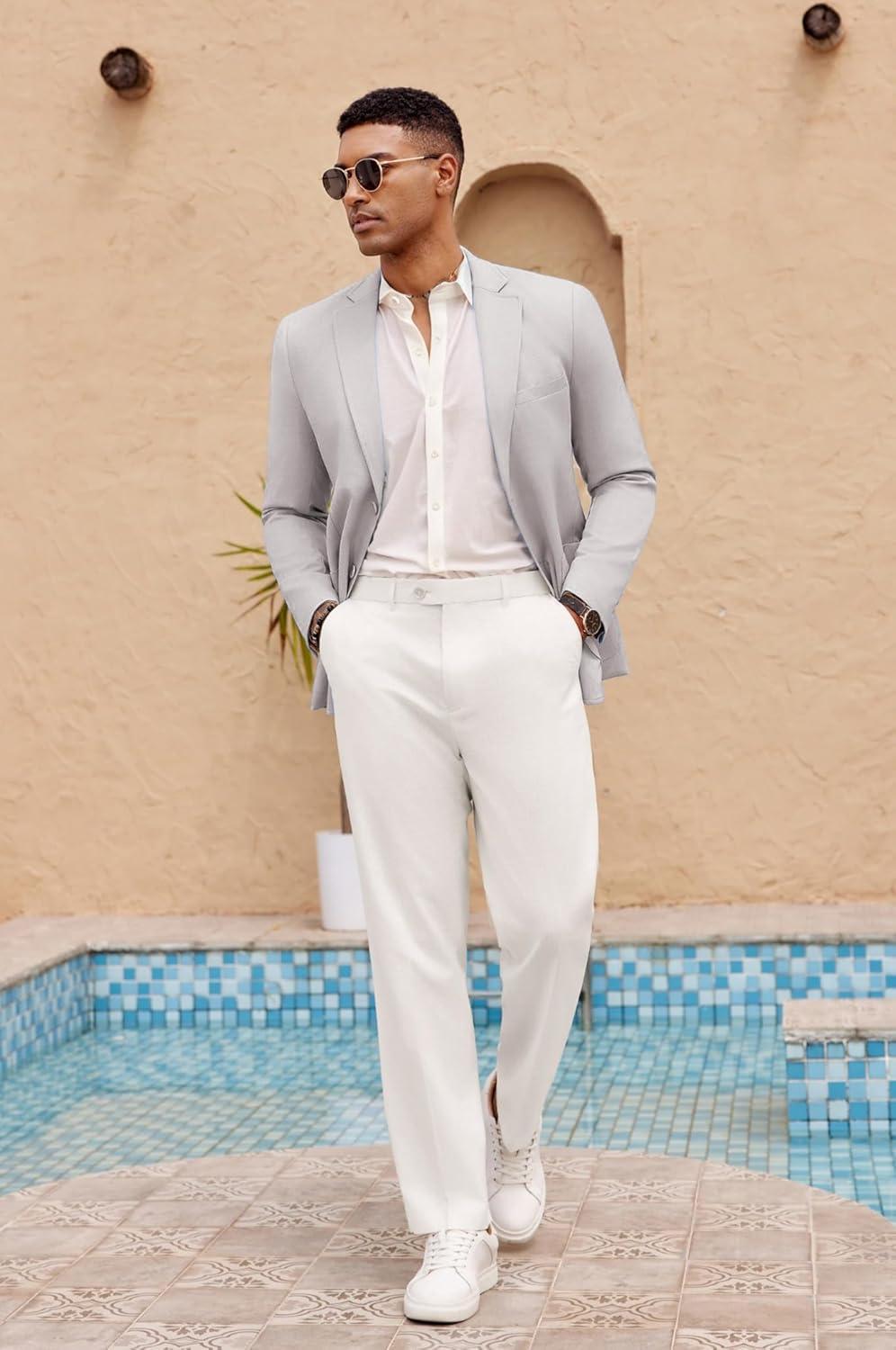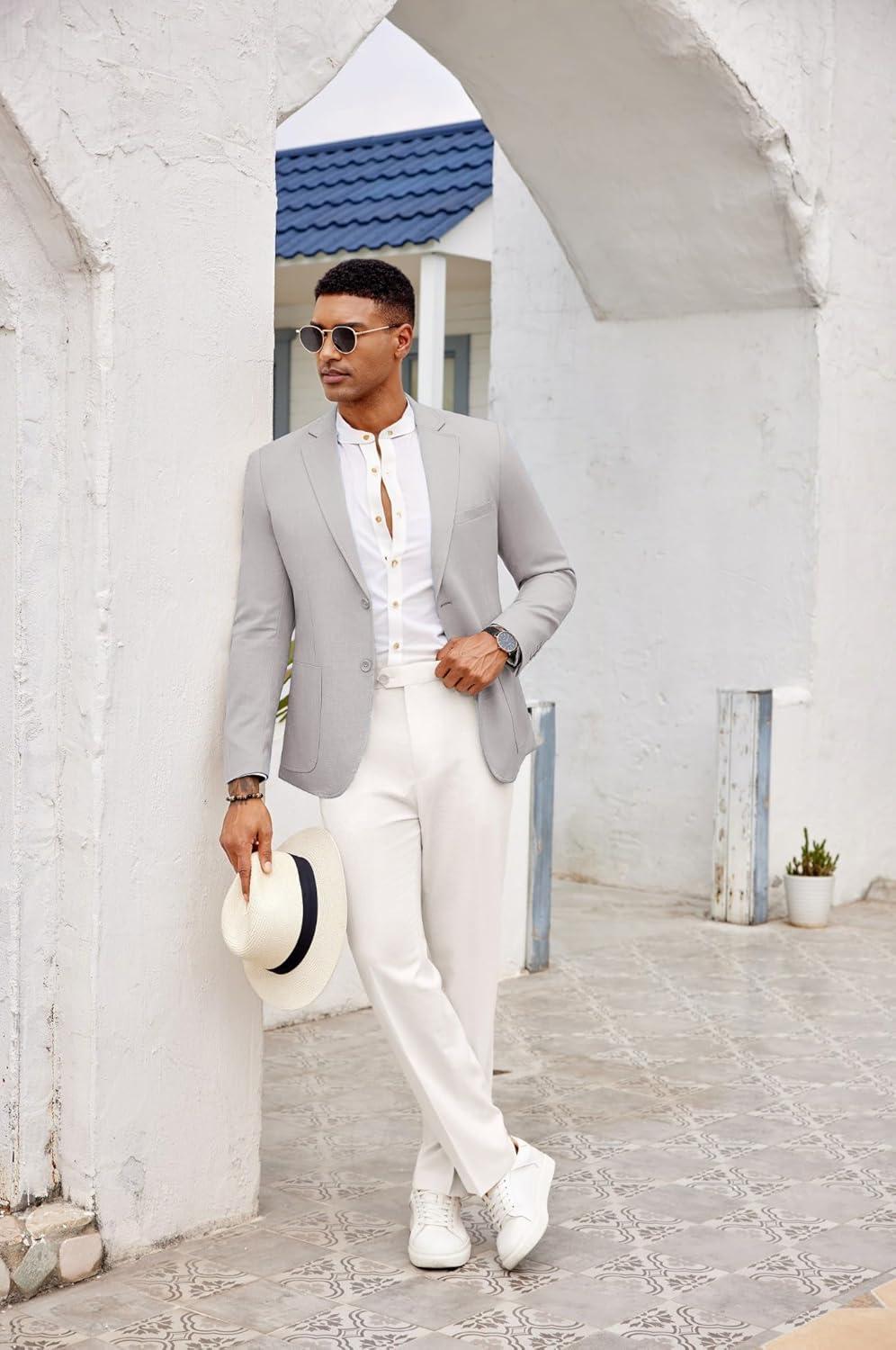 COOFANDY Mens Casual Sport Coat Lightweight Two Button Blazer Slim Fit Business Jackets(Light Grey)