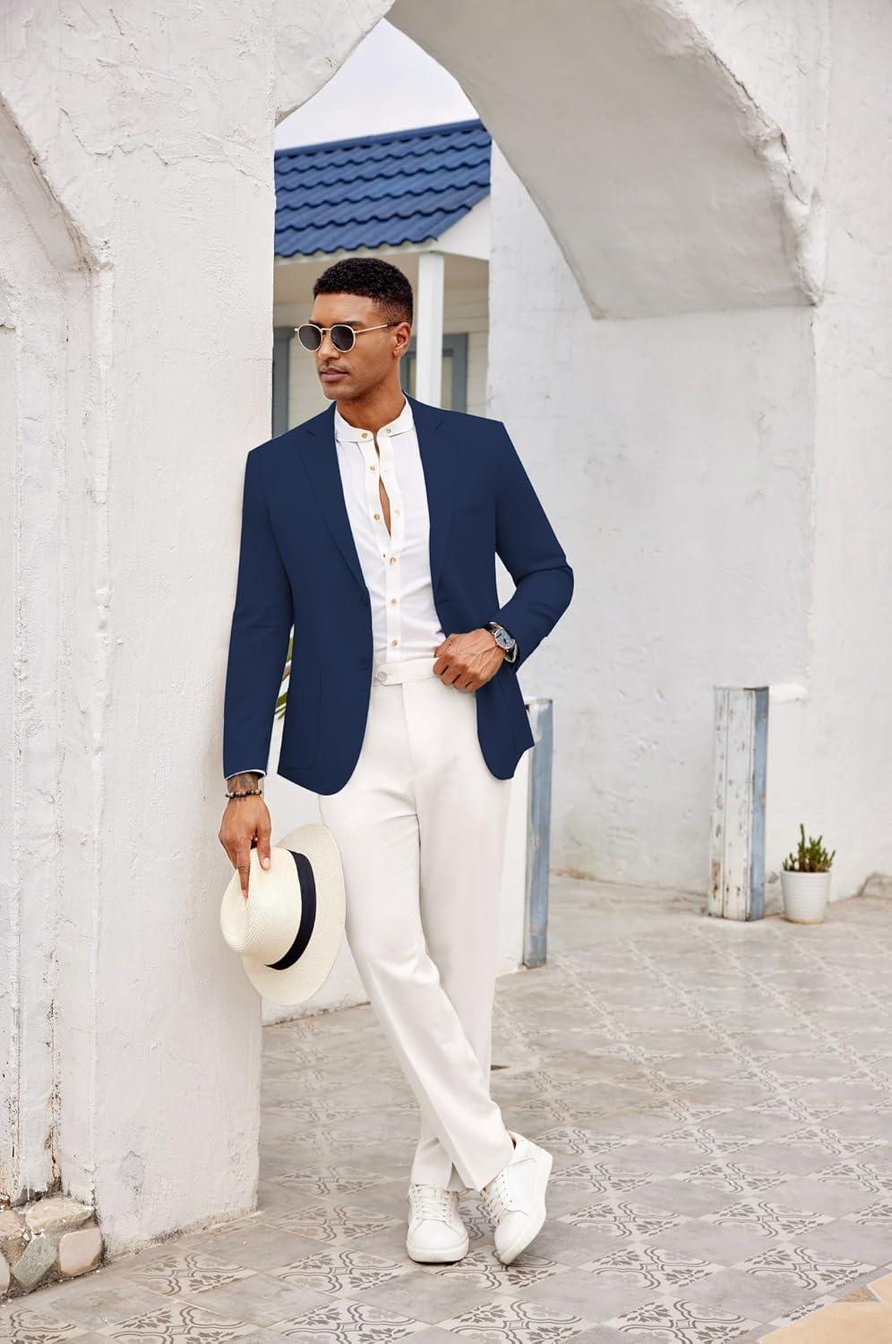 COOFANDY Mens Casual Sport Coat Lightweight Two Button Blazer Slim Fit Business Jackets(Navy Blue)