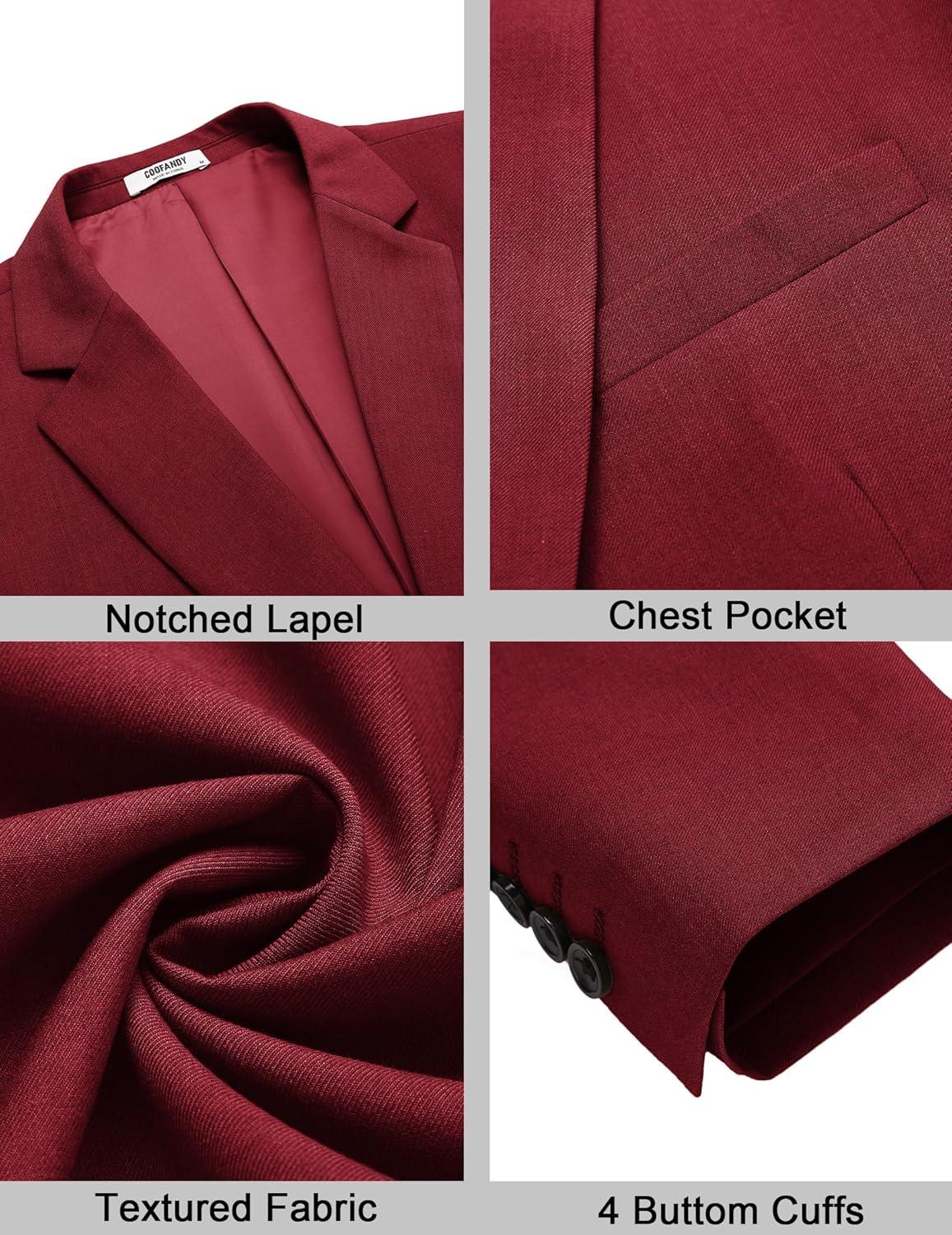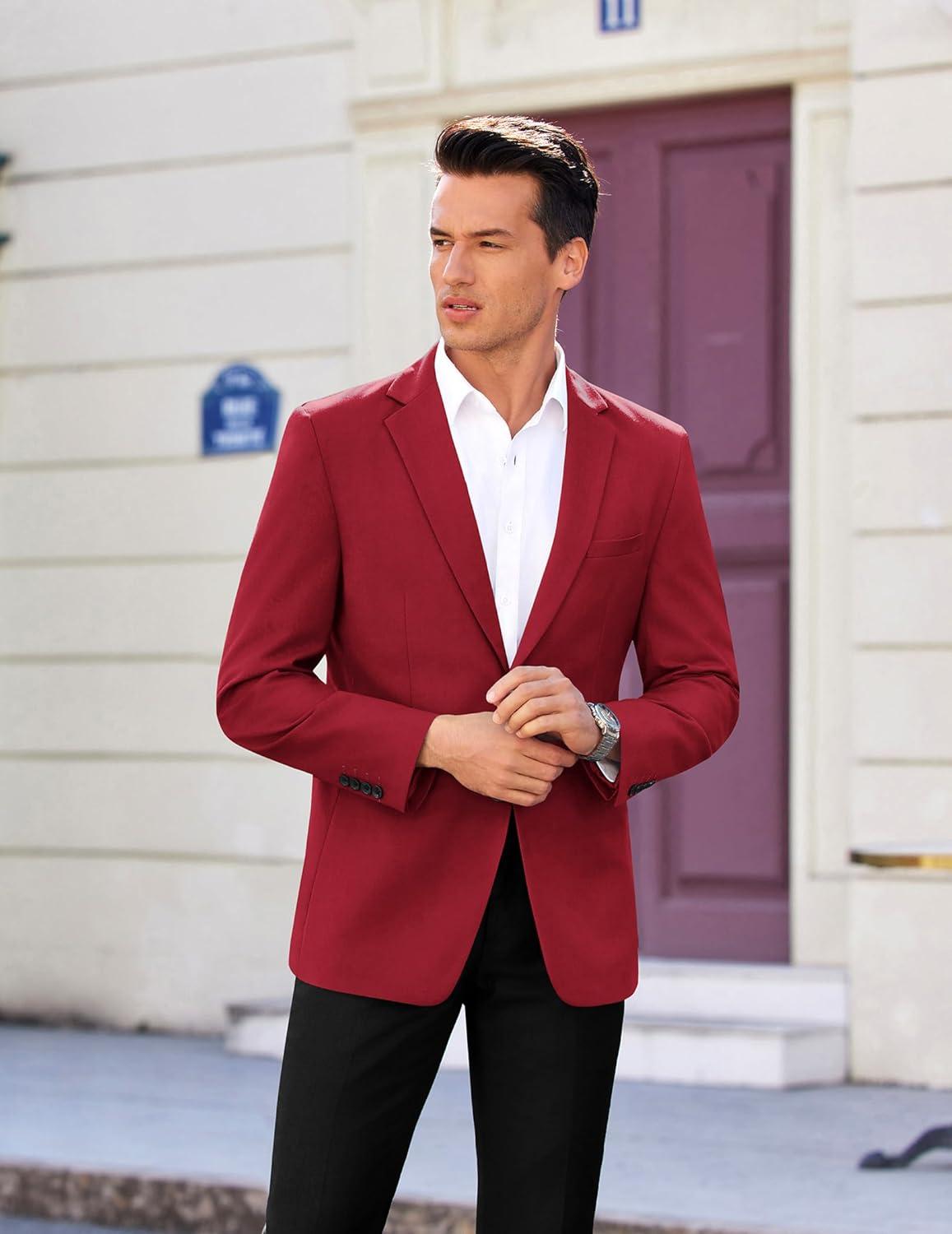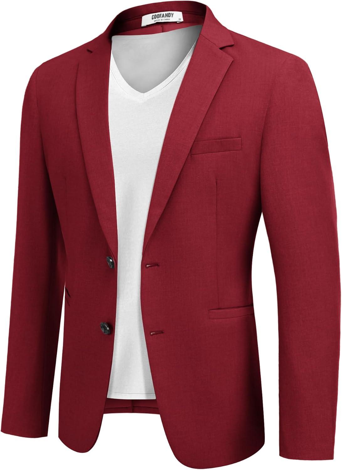 COOFANDY Mens Casual Sport Coat Regular Fit Lightweight Blazers Jacket Two Button Business Suit Jackets(Red)
