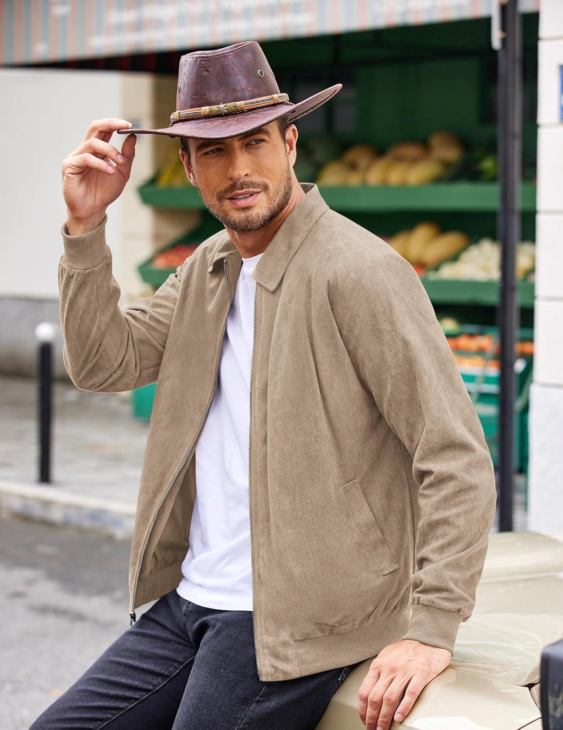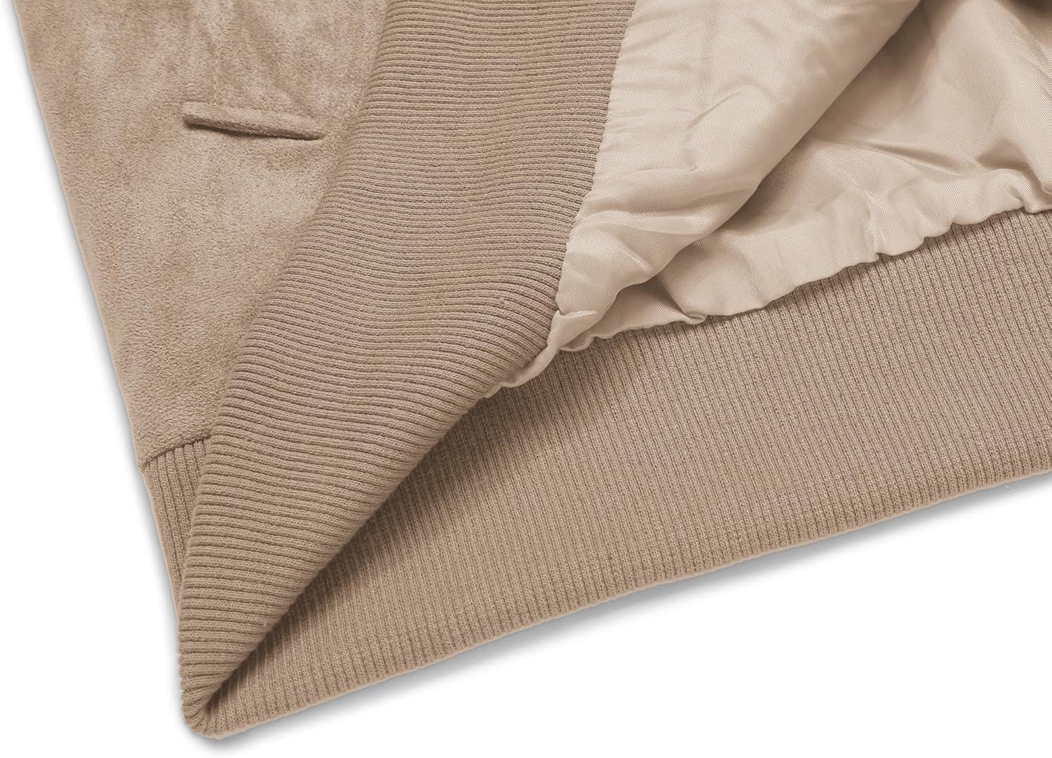 COOFANDY Men’s Casual Suede Bomber Jacket Lightweight Full Zip Up Jackets Vintage Faux Leather Jacket(Light Brown)