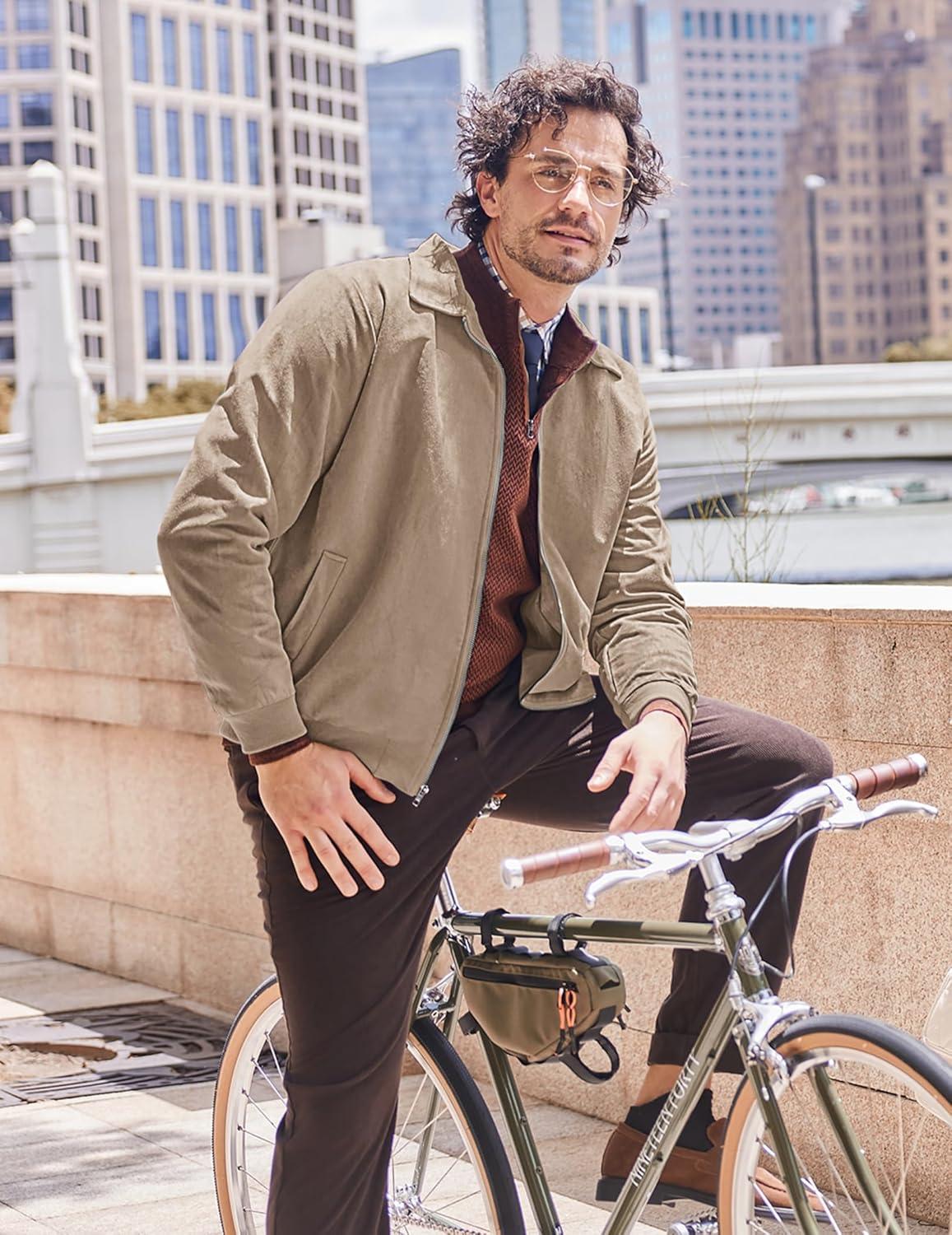 COOFANDY Men's Casual Suede Bomber Jacket Lightweight Full Zip Up Jackets Vintage Faux Leather Jacket(Khaki)