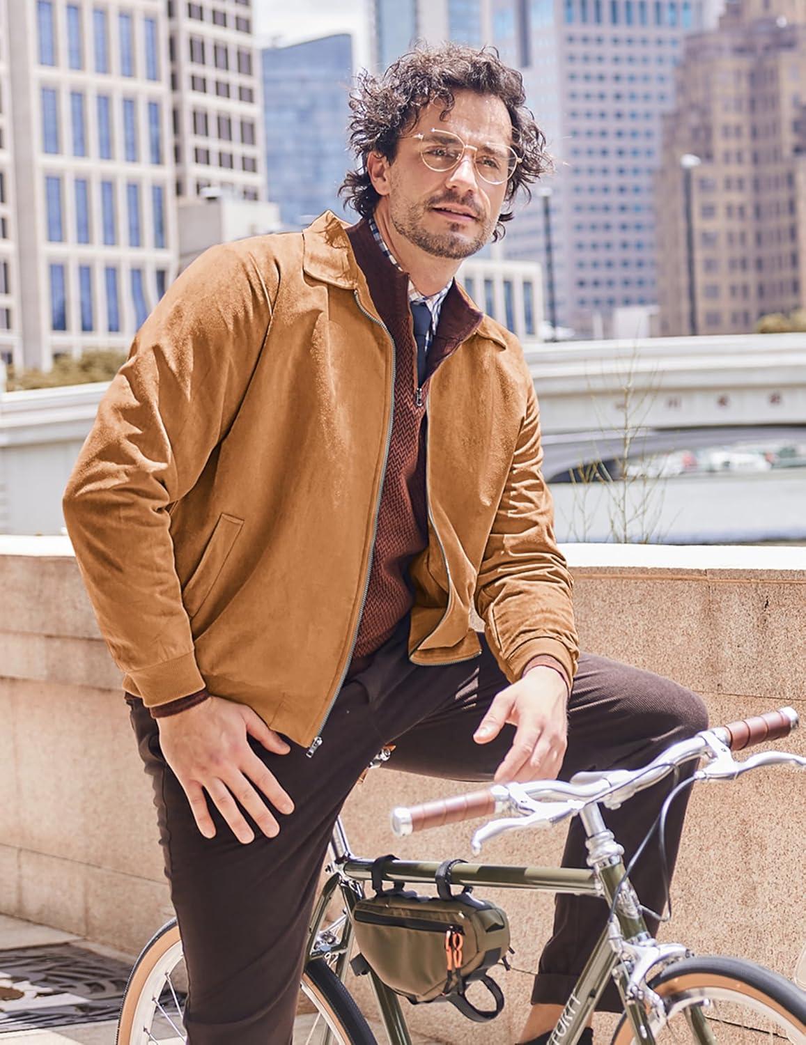 COOFANDY Men's Casual Suede Bomber Jacket Lightweight Full Zip Up Jackets Vintage Faux Leather Jacket(Light Brown)