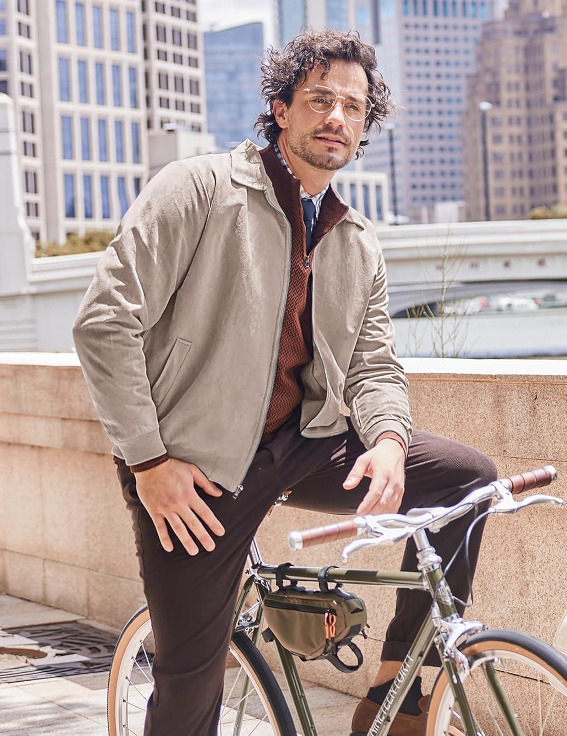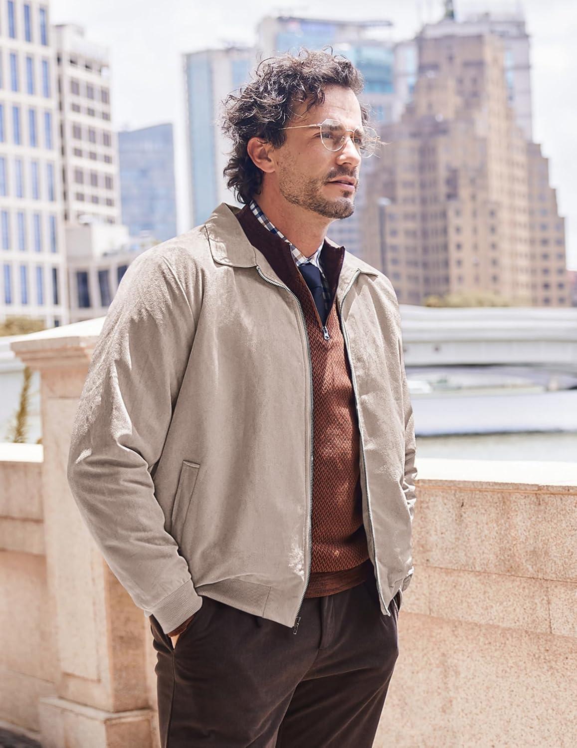 Get the COOFANDY Men’s Casual Suede Bomber Jacket Lightweight Full Zip Up Jackets Vintage Faux Leather Jacket(Moon Grey) you want at a discounted price during our markdown sale event.