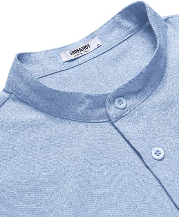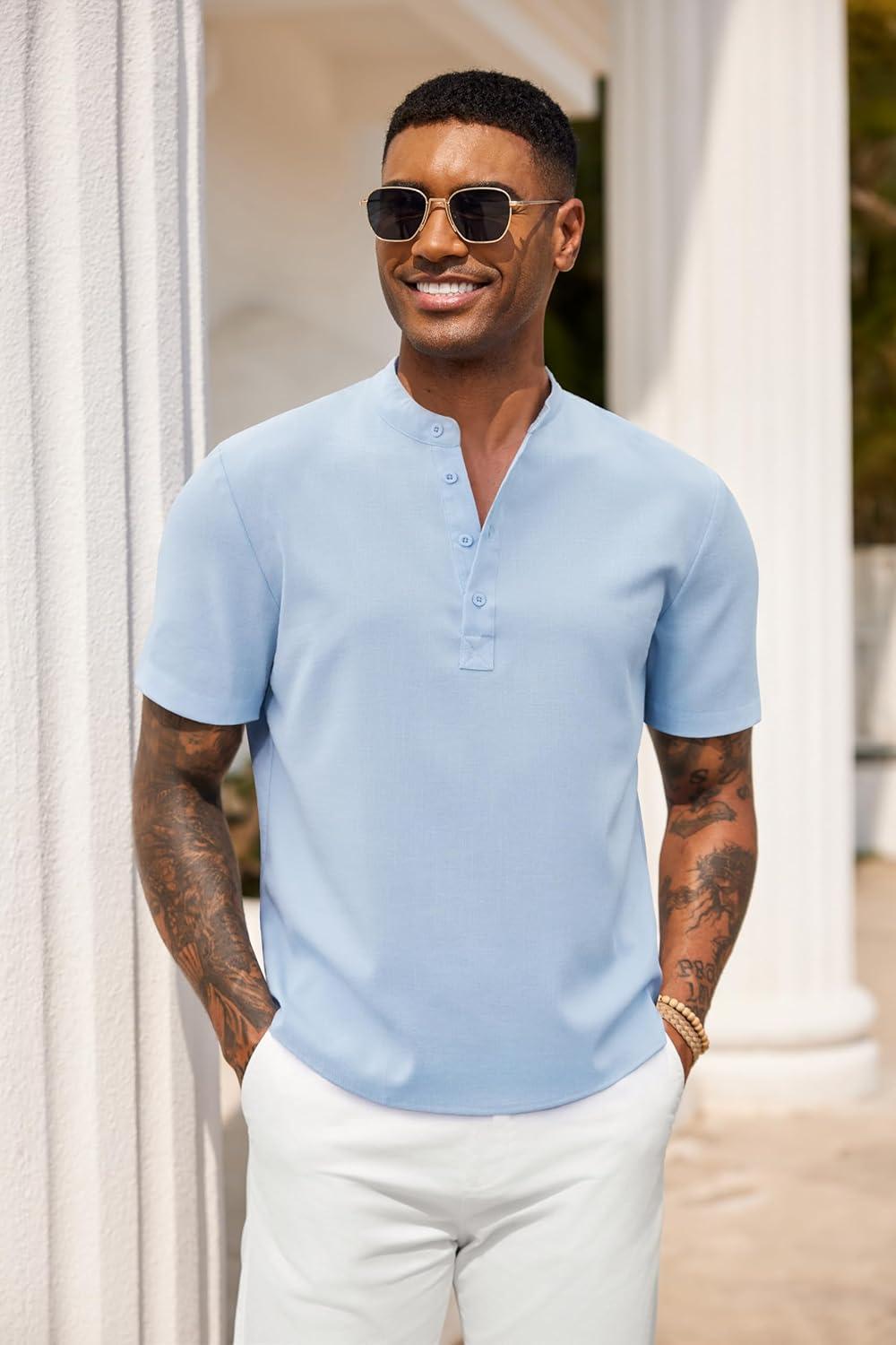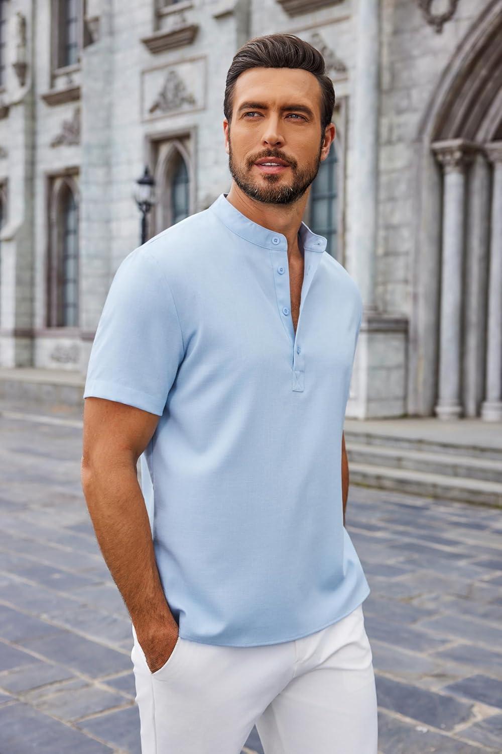 COOFANDY Men's Casual Summer Beach Henley Shirt Band Collar Lightweight Hippie Tee Shirts(Light Blue)