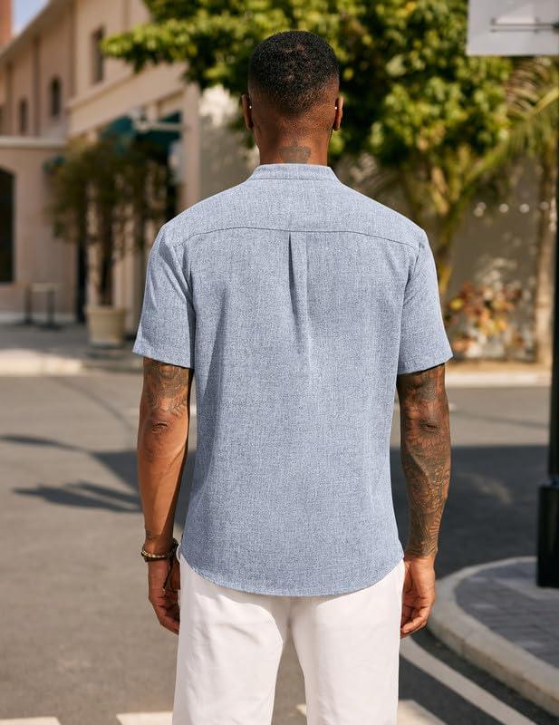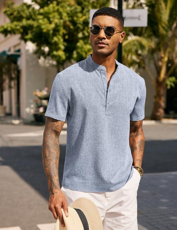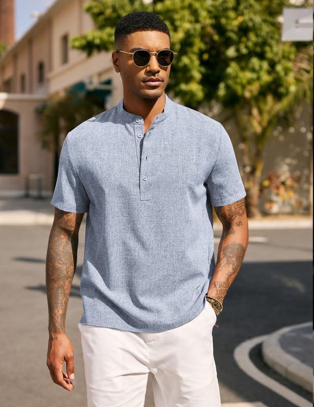 COOFANDY Men's Casual Summer Beach Henley Shirt Band Collar Lightweight Hippie Tee Shirts(Light Blue1)