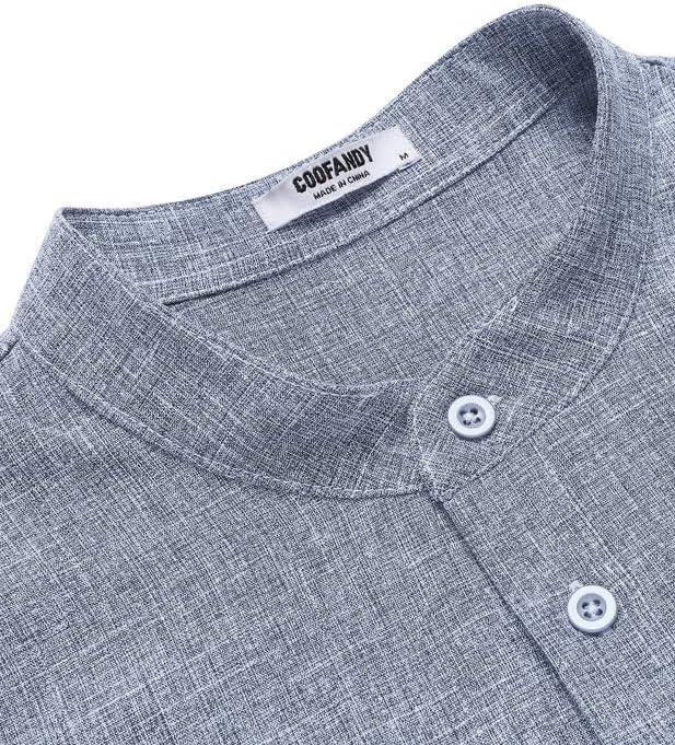 COOFANDY Men’s Casual Summer Beach Henley Shirt Band Collar Lightweight Hippie Tee Shirts(Dark Gray)