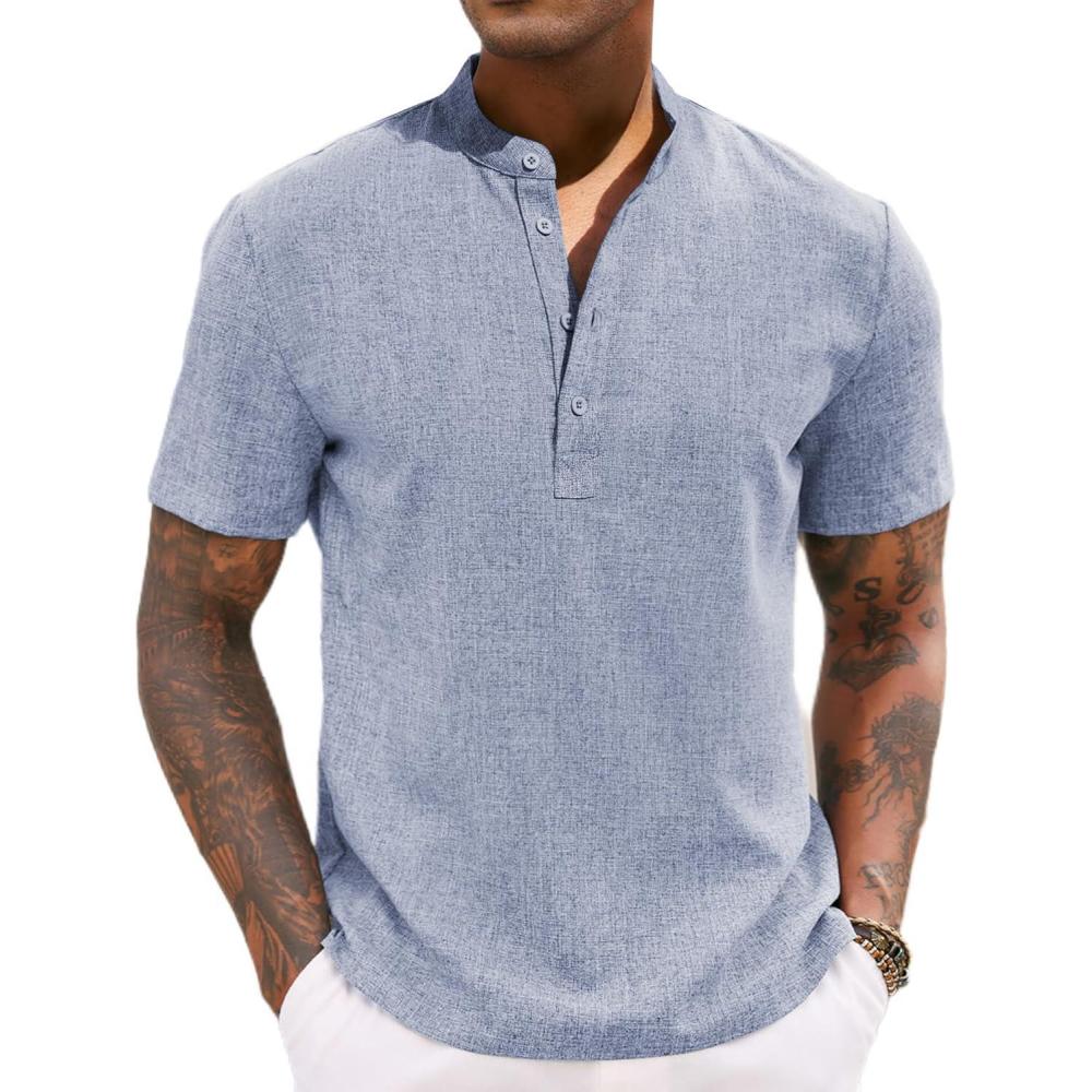 COOFANDY Men’s Casual Summer Beach Henley Shirt Band Collar Lightweight Hippie Tee Shirts(Light Blue1)