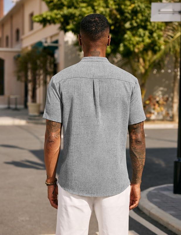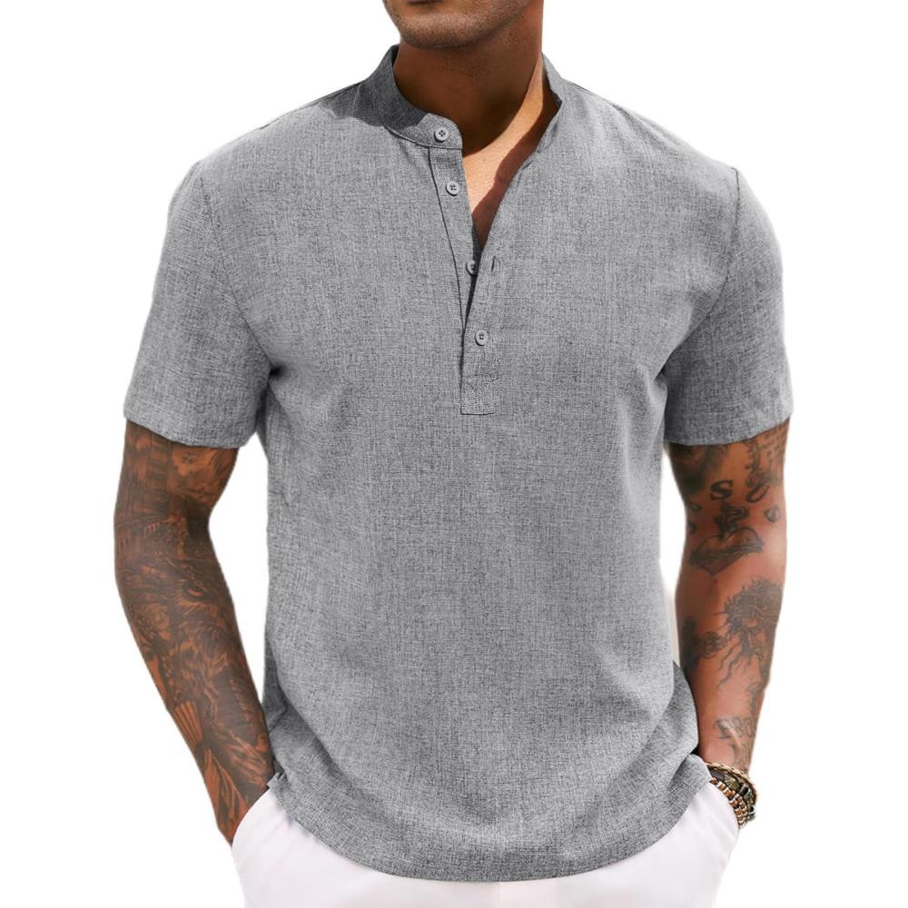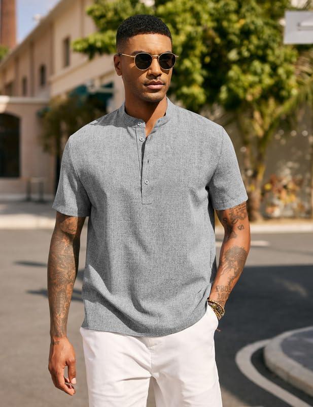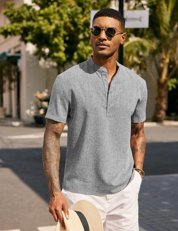 COOFANDY Men's Casual Summer Beach Henley Shirt Band Collar Lightweight Hippie Tee Shirts(Light Gray)