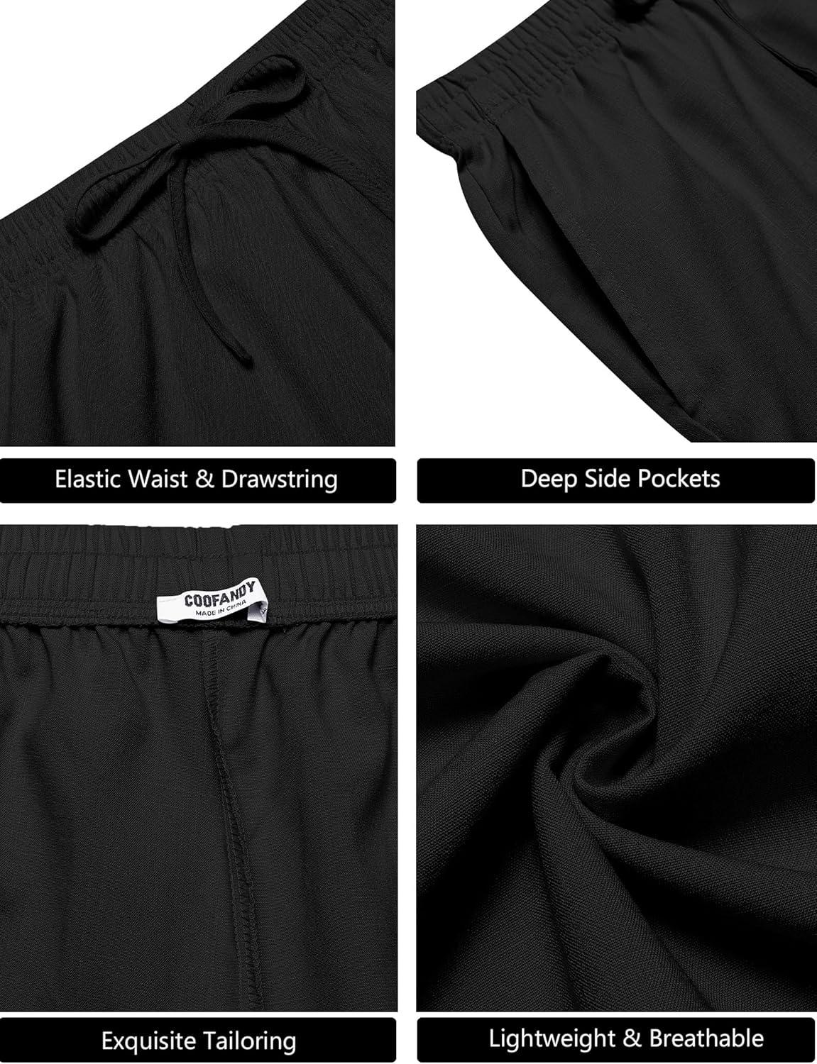 COOFANDY Mens Casual Summer Beach Linen Shorts 9 Inch Lightweight Drawstring Elastic Waist Shorts with Pockets(Black)