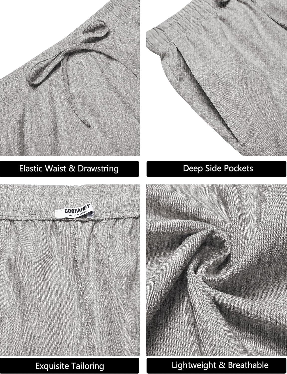 COOFANDY Mens Casual Summer Beach Linen Shorts 9 Inch Lightweight Drawstring Elastic Waist Shorts with Pockets(Light Grey)