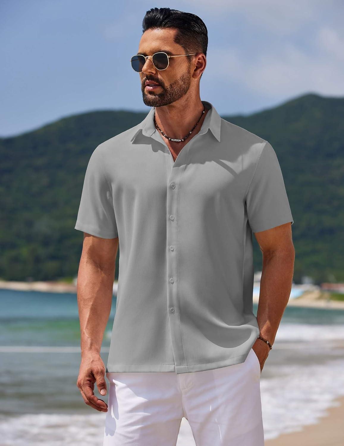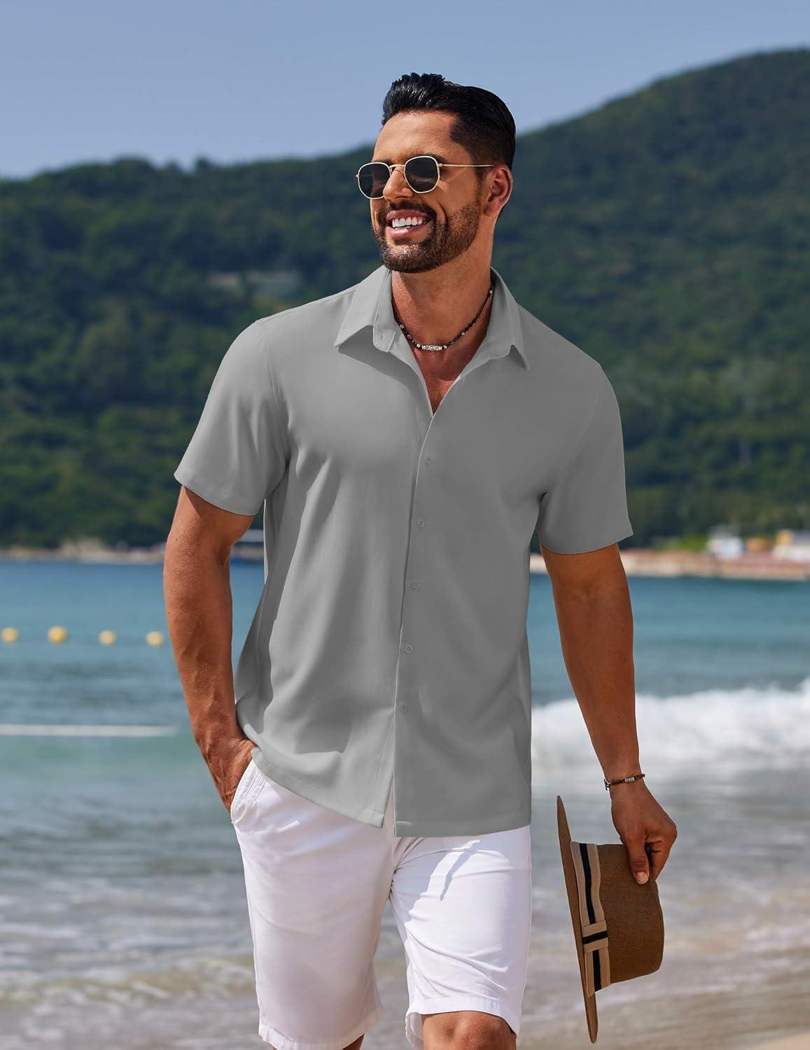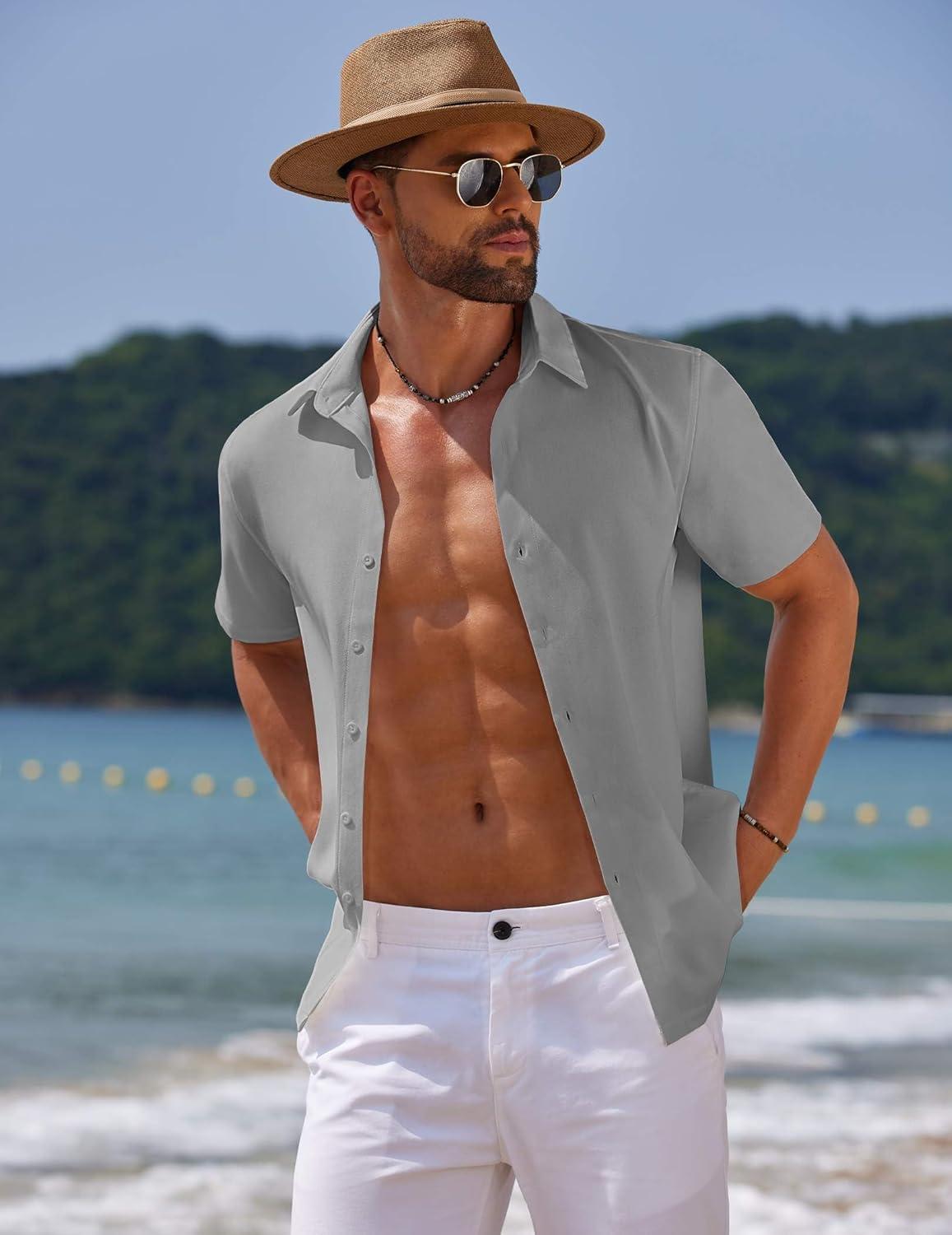 Our clearance section features the best deals on COOFANDY Mens Casual Summer Beach Shirt Button Down Short Sleeve Shirts Vacation Shirt Cotton Linen Shirts(Light Gray) and accessories. Check it out now!