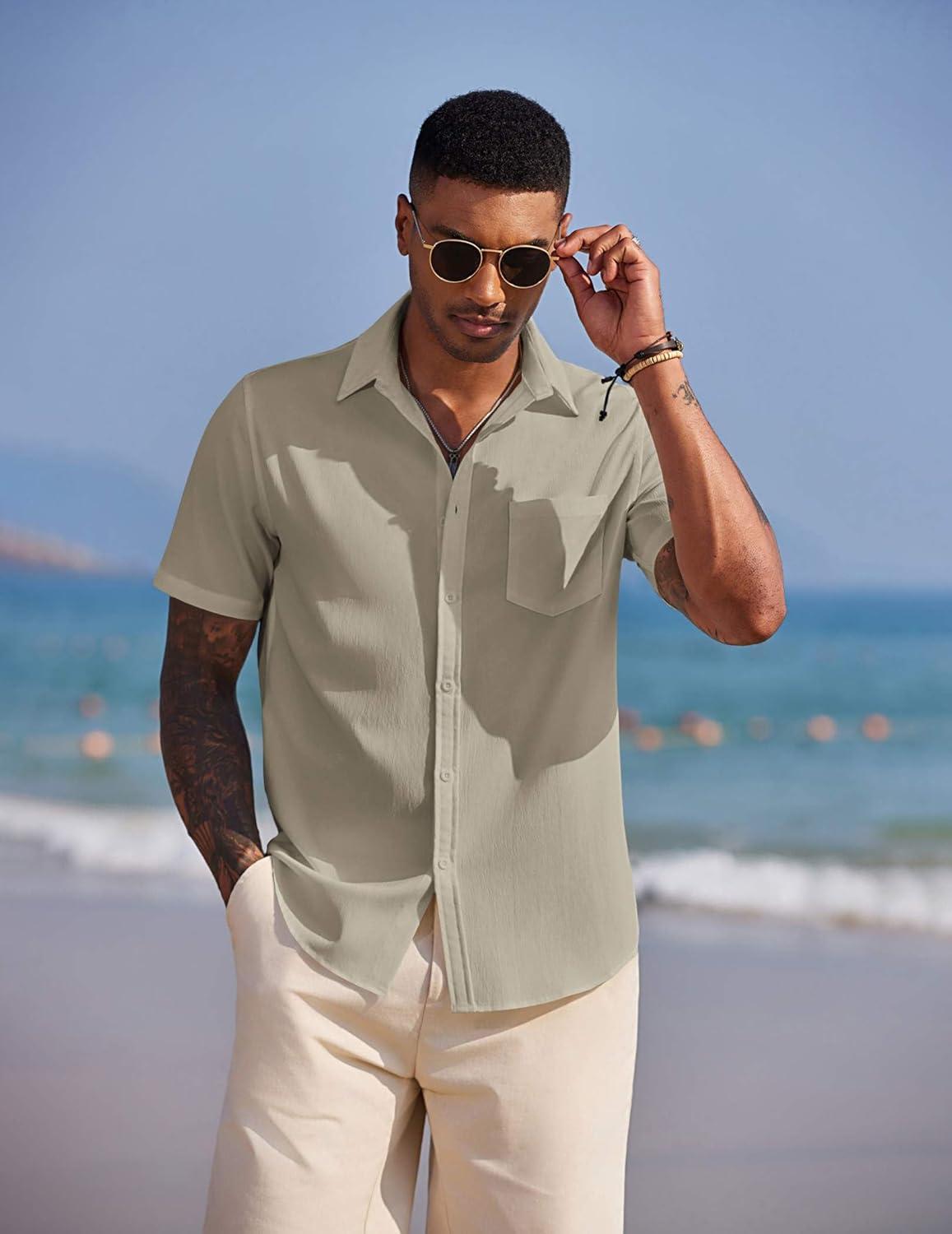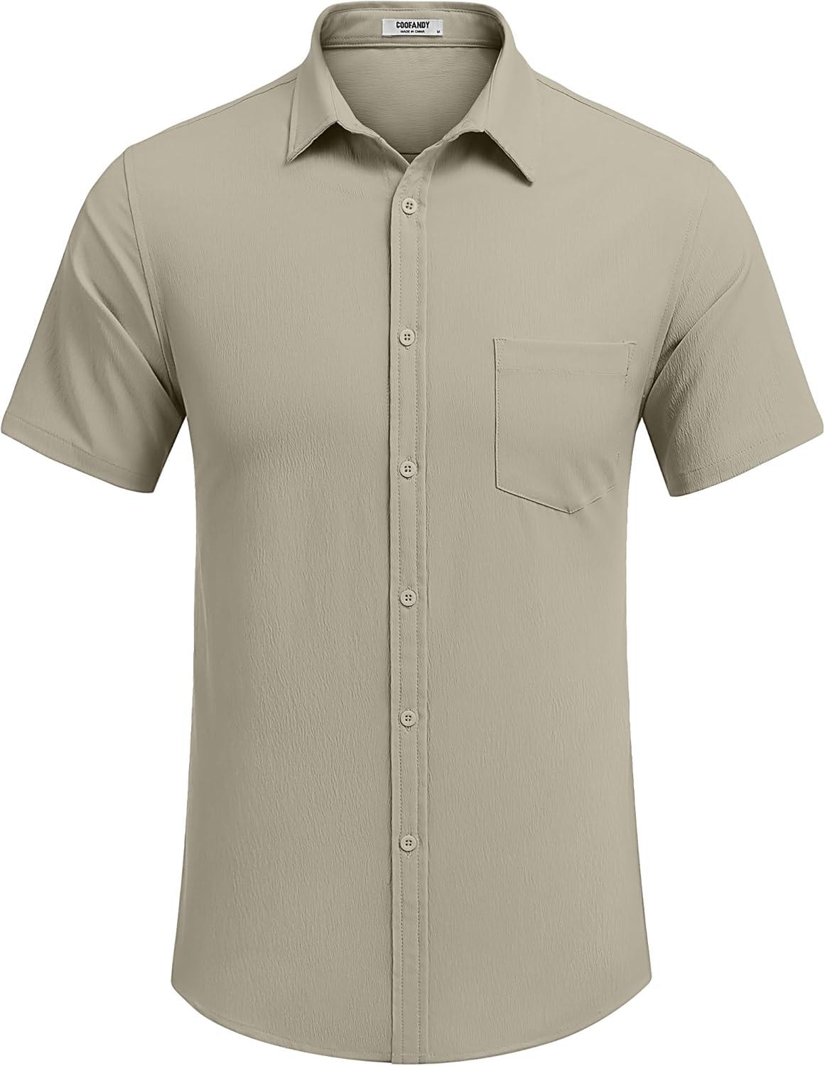 imageCOOFANDY Mens Casual Summer Beach Wrinkle Free Shirts Short Sleeve Button Down Lightweight Untucked Textured ShirtZsunrise
